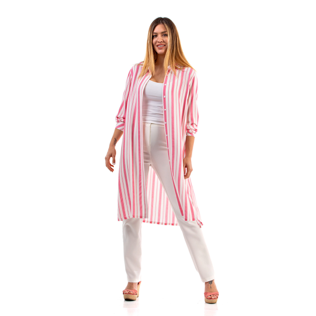 Πουκάμισα cemisiet 100% Cotton ριγέ σε ίσια γραμμή με πολύ λεπτή Lurex γραμμή στις ρίγες.