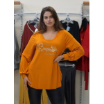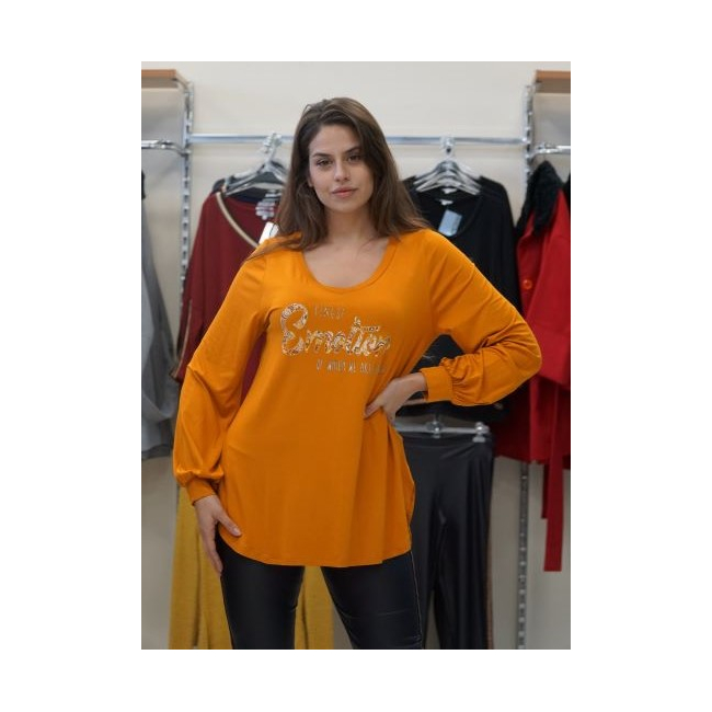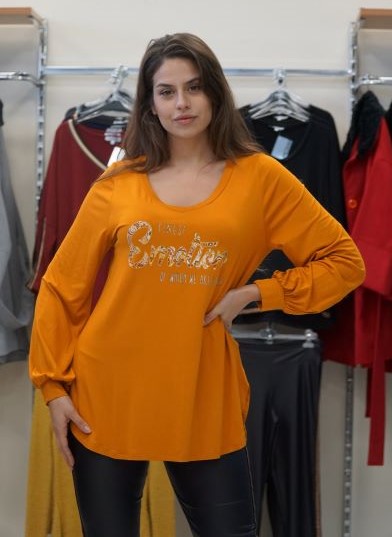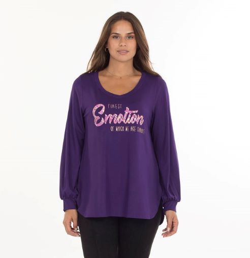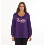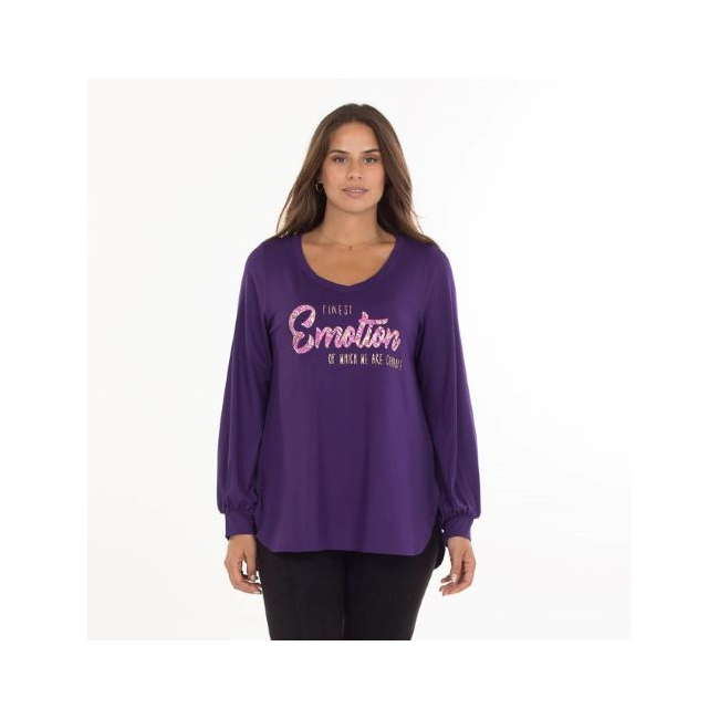 Μπλούζα Viscose, άνιση, στρογγυλή λαιμόκοψη, τύπωμα μπροστά "EMOTION", μανίκια μανσέτα, σε ίσια πολύ άνετη γραμμή.