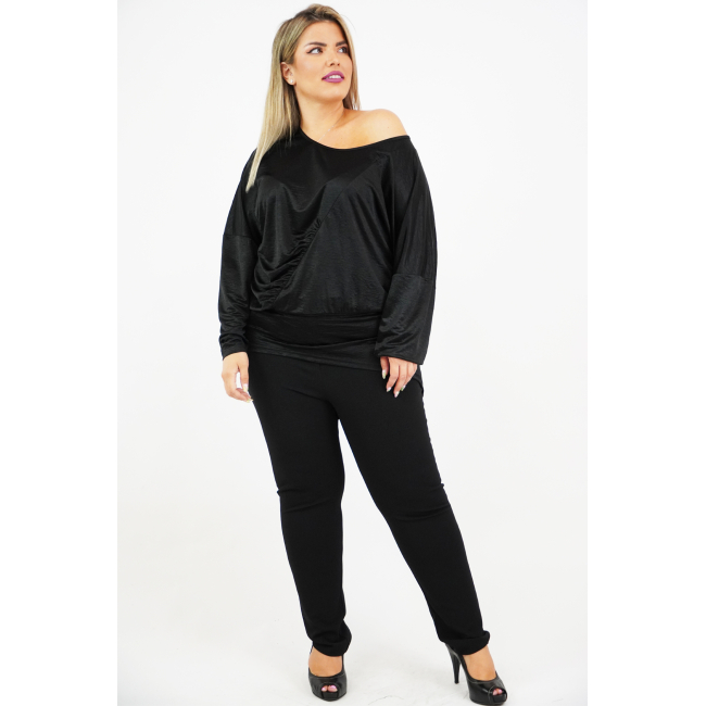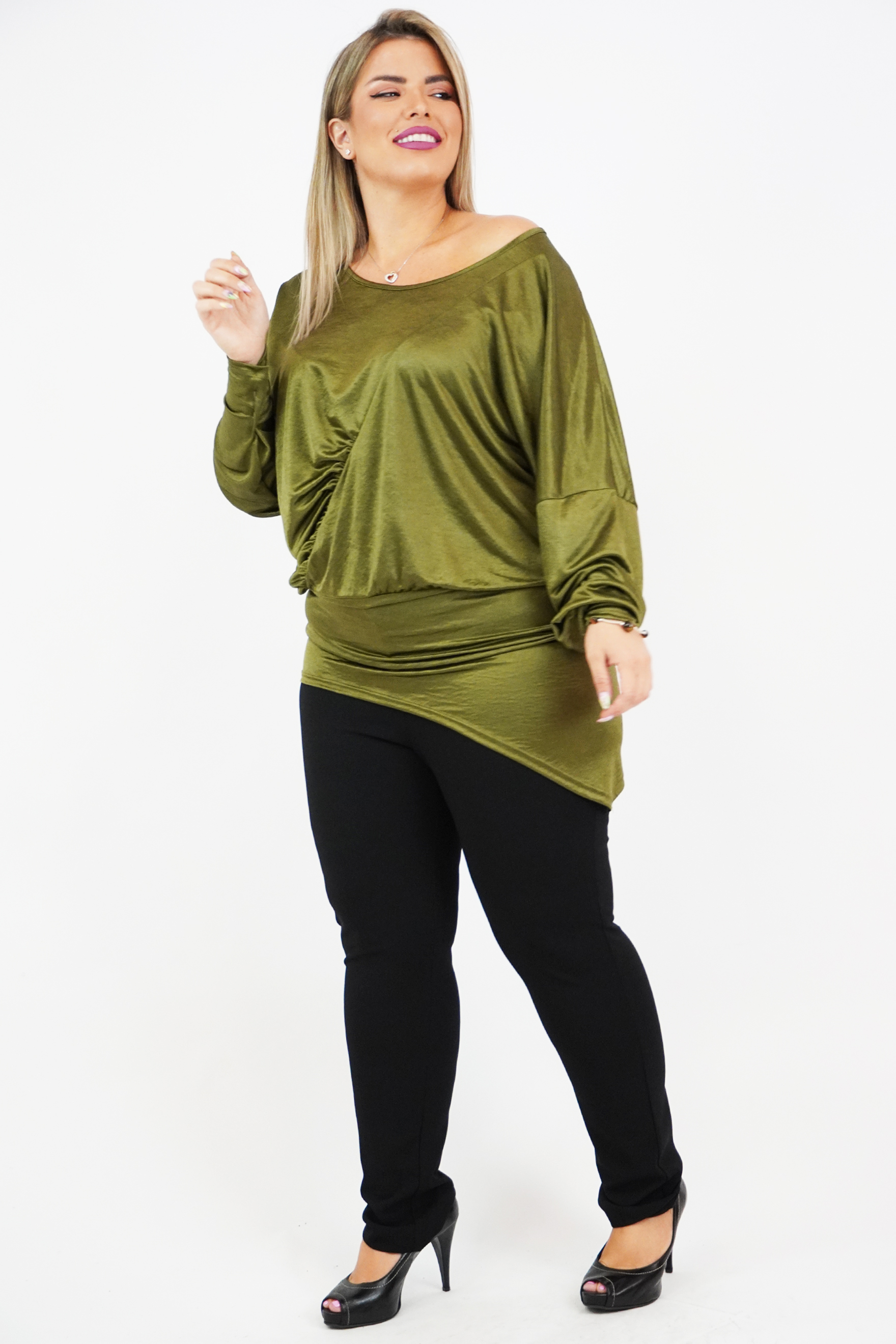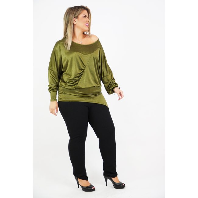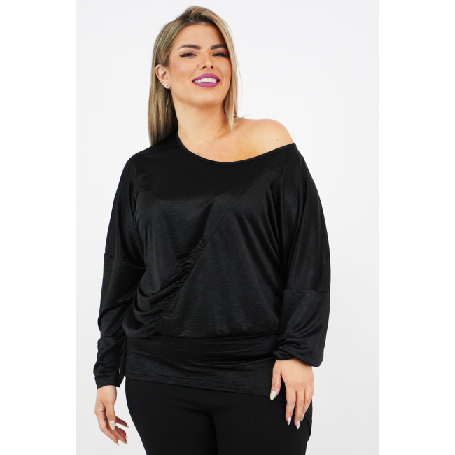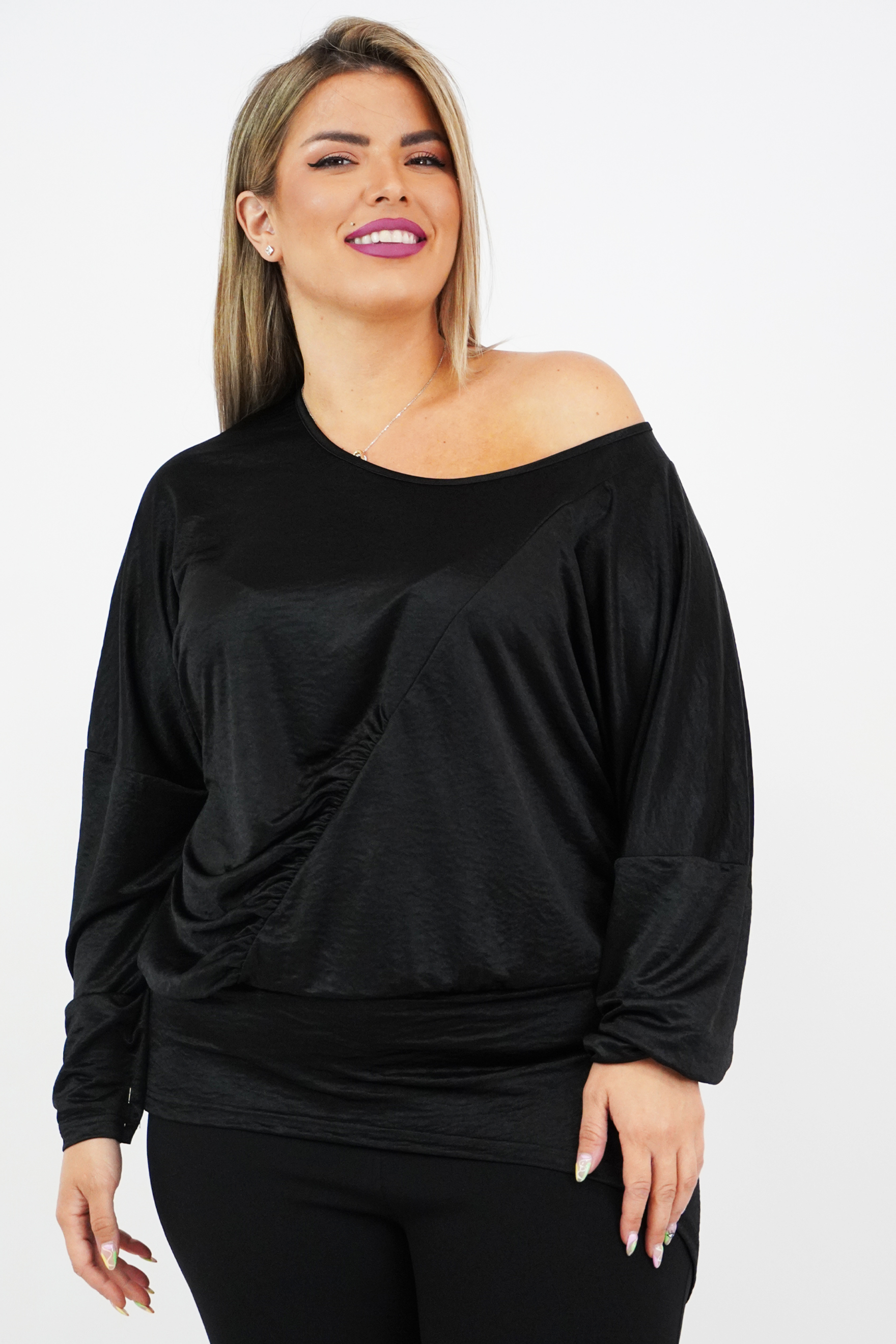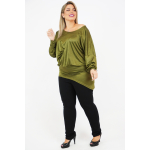 Μπλουζοφόρεμα ασύμετρο σε Bodre ελαστικό ύφασμα, στρογγυλή ανοιχτή λαιμόκοψη με λοξό ντραπάρισμα μπροστά, ζαπονέ μακριά μανίκια, σε άνετη γραμμή