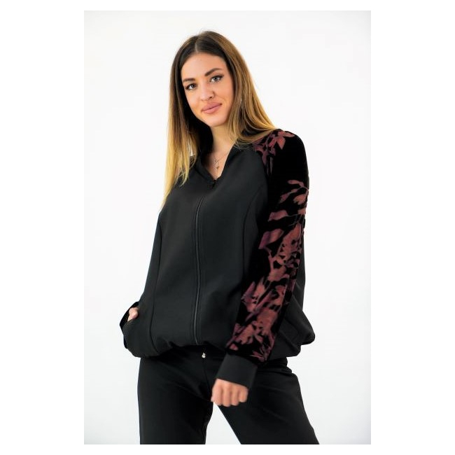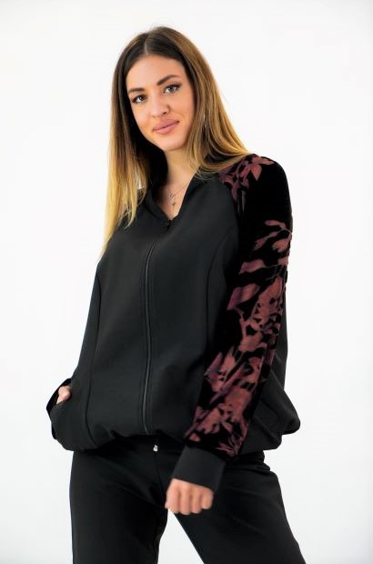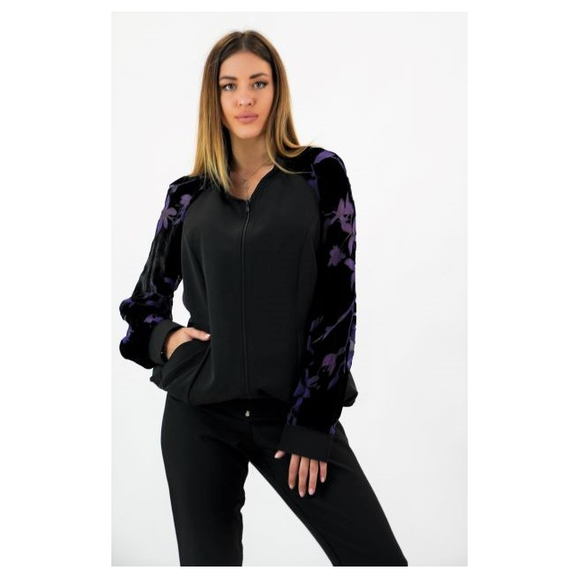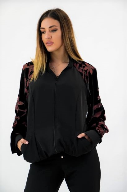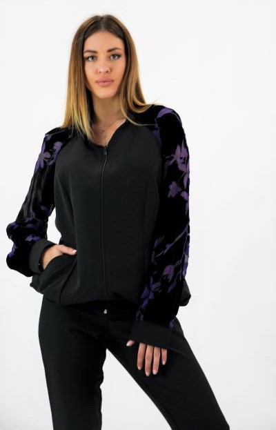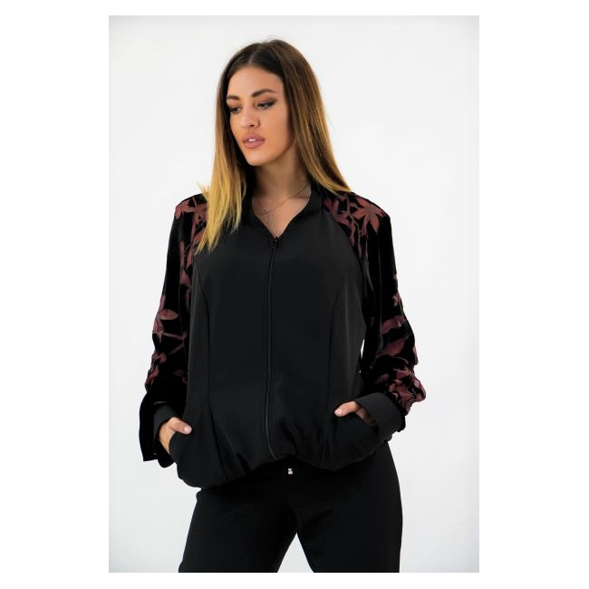 Bomber (Ζακέτα/Μπουφάν) κρεπ ελαστικό, μανίκια με βελούδινο devore ανάγλυφο και λάστιχο στο τελείωμα για δημιουργεία "Μπουφαν"