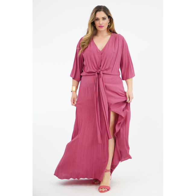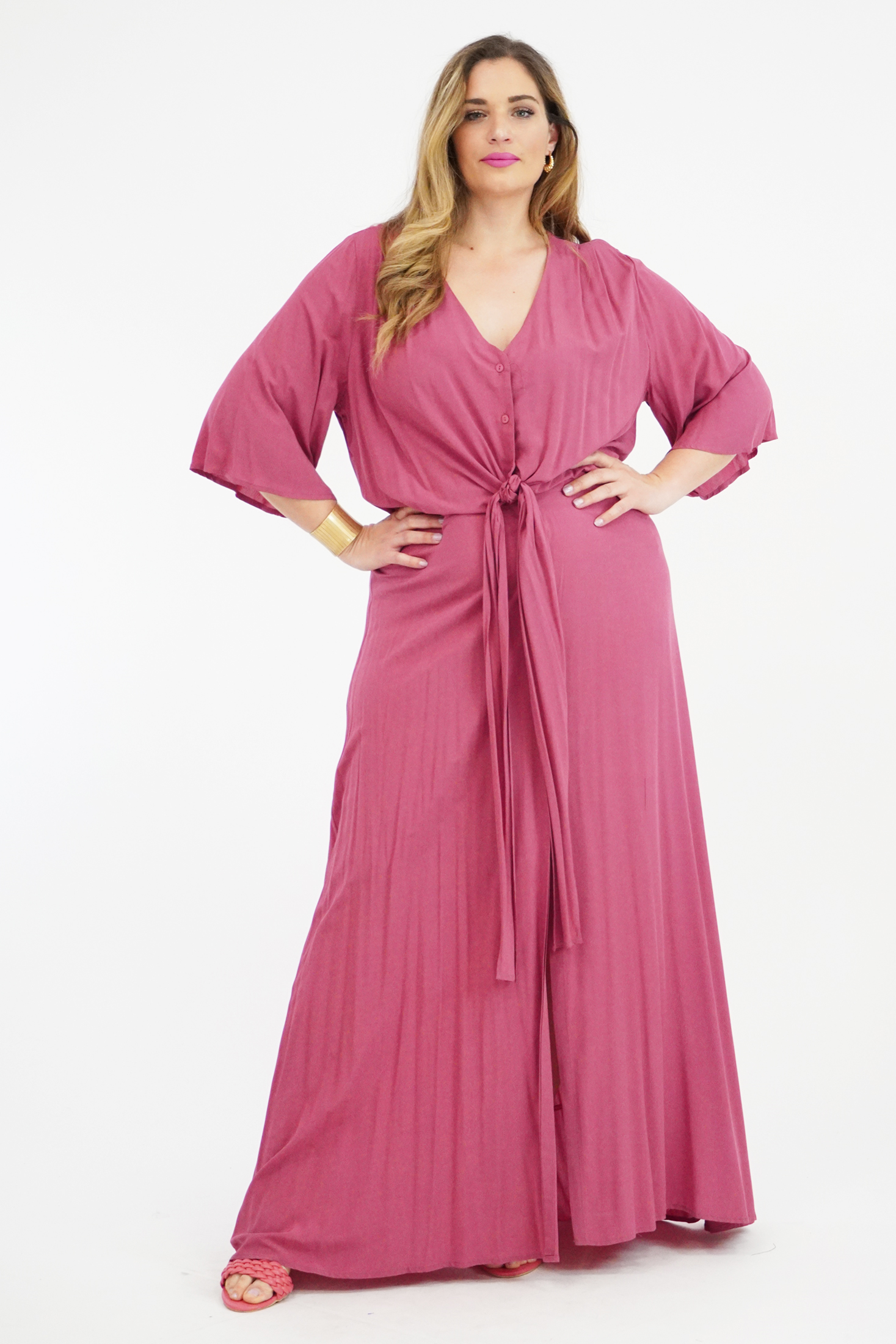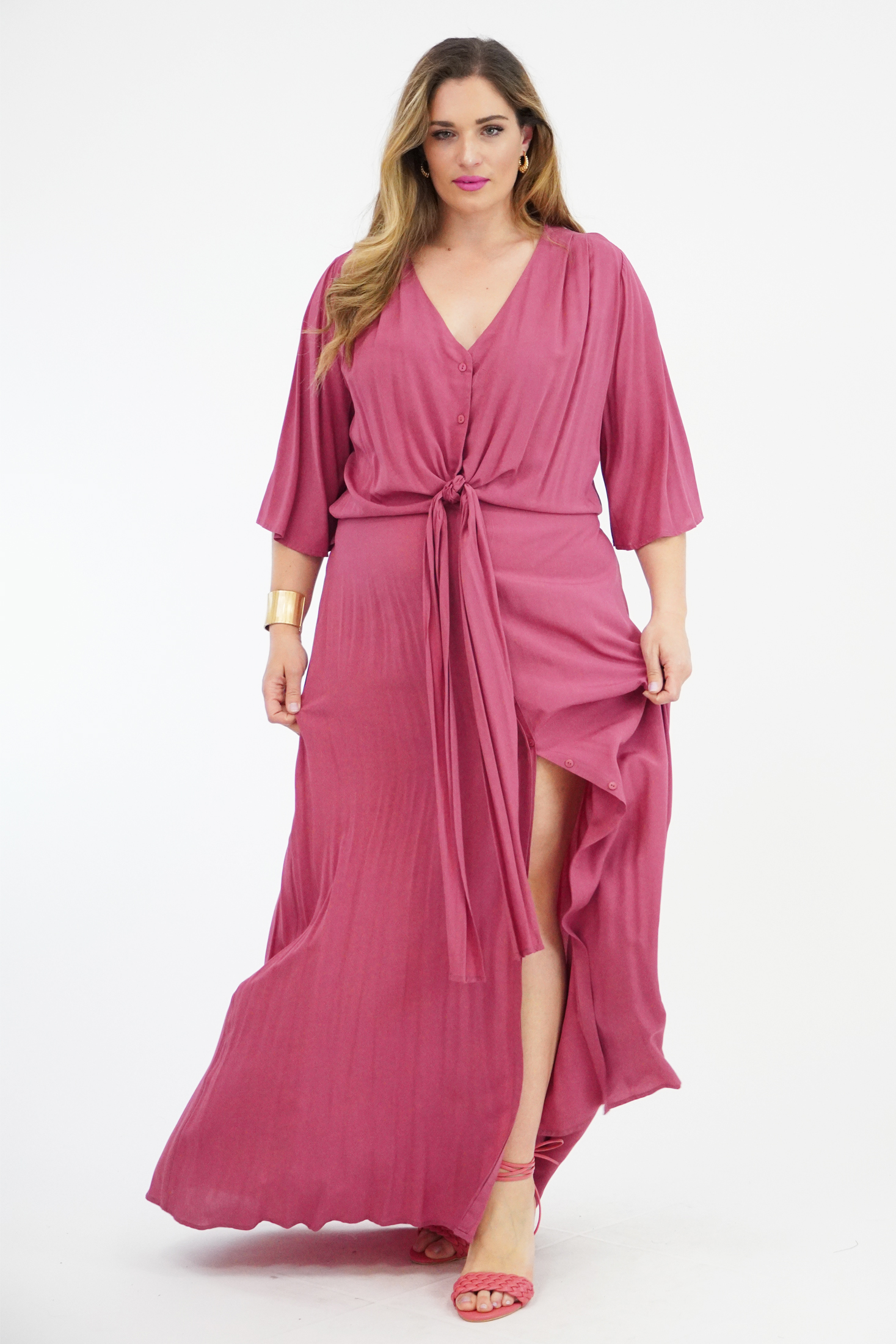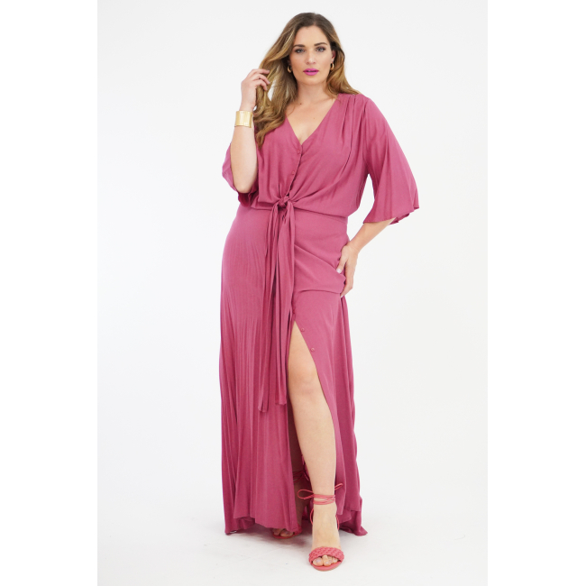 Φόρεμα μάξι Voual Cotton, πατιλέτα κουμπιά ως το στήθος με διακριτκό δέσιμο, τρουακάρ μανίκια σε Α γραμμή, ενσωματωμένο λάστιχο πίσω στη μέση για καλύτερη εφαρμογή και φούστα σε Α πολύ άνετη γραμμή με σκίσιμο.