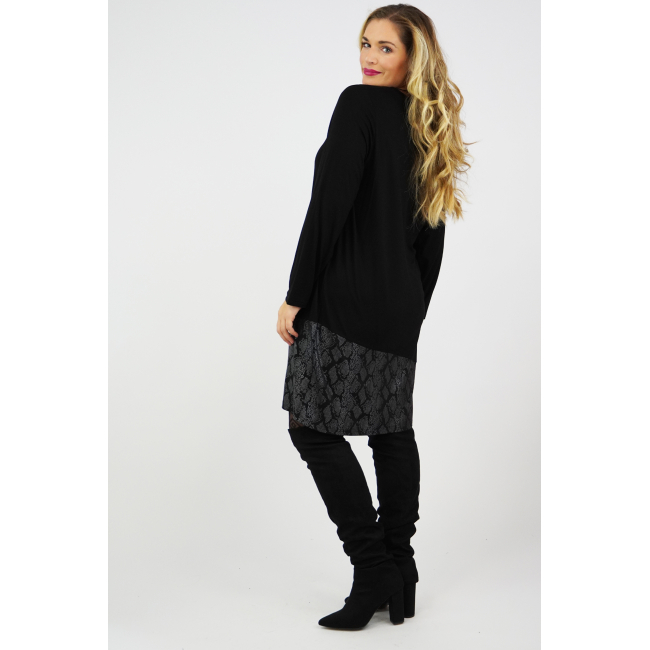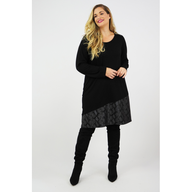 Φόρεμα μίντι, Winter Viscose, λαιμόκοψη, ασύμετρη snake print φάσα στο τελείωμά του, σε ίσια πολύ άνετη γραμμή