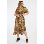 Φόρεμα Jersey εμπριμέ, άνισο, V ντεκολτέ, κρουαζέ μπούστο, ζαπονέ κοντό μανίκι και άνιση "φάκελος" φούστα, σε πολύ άνετη γραμμή