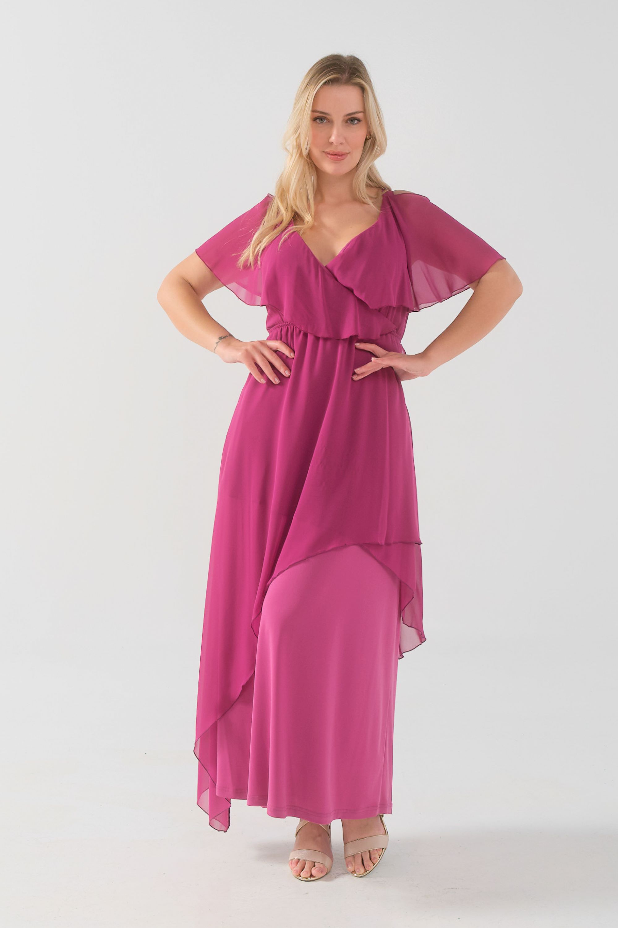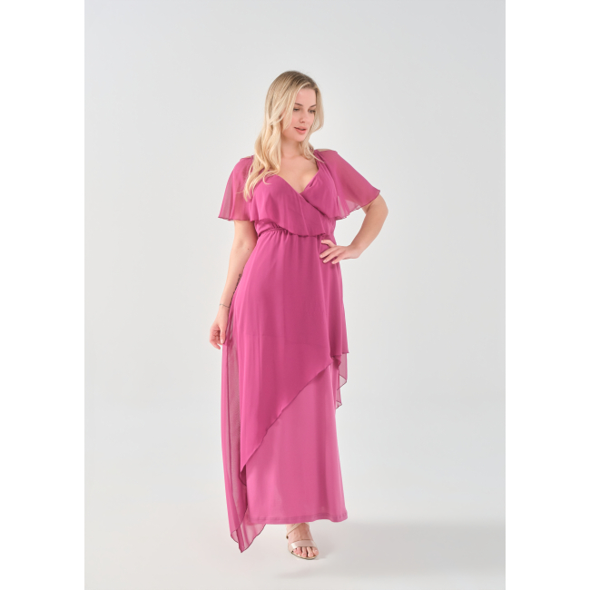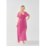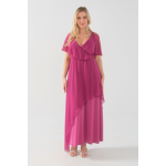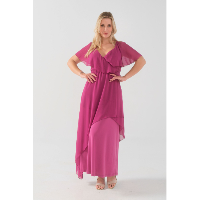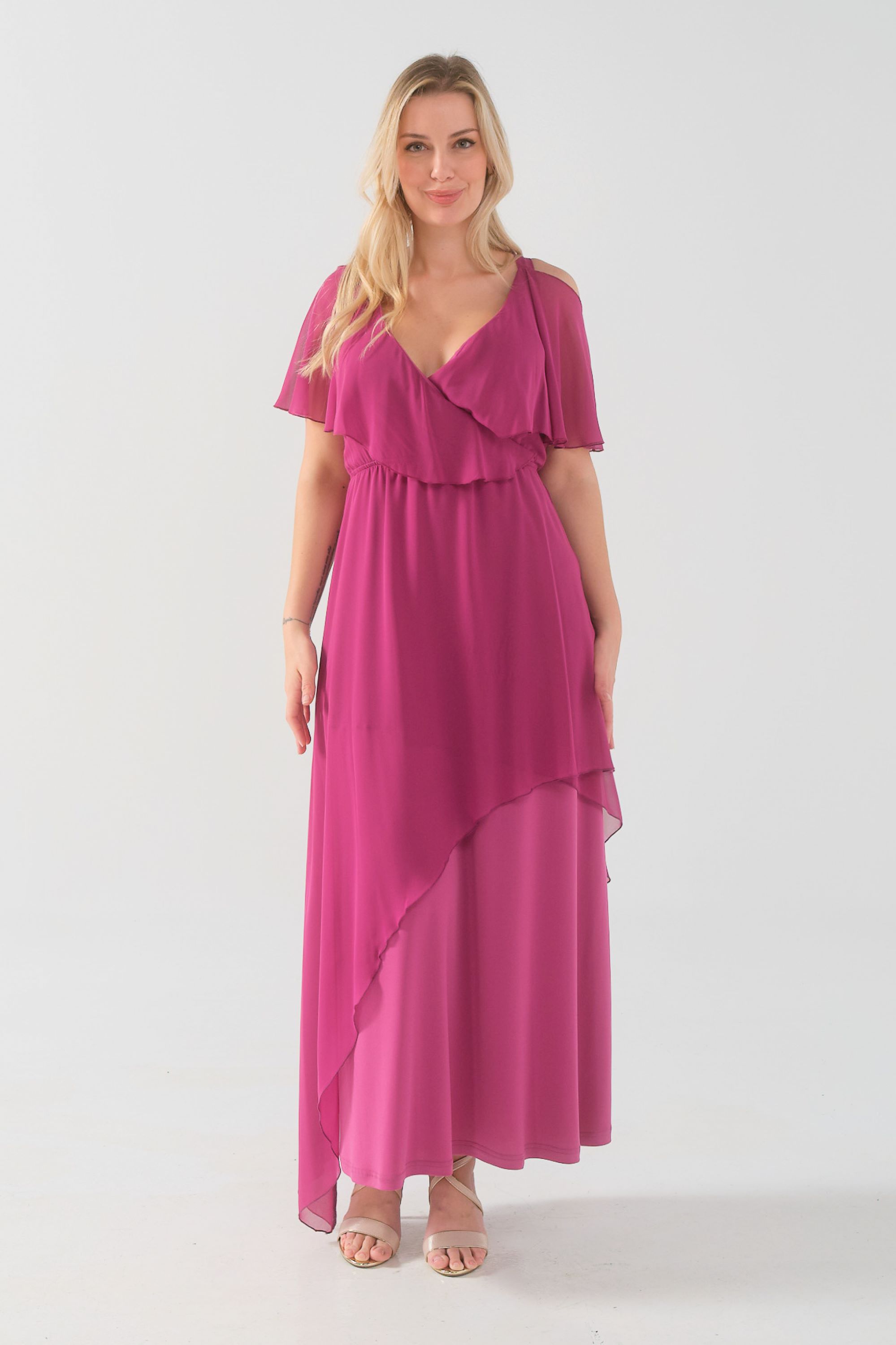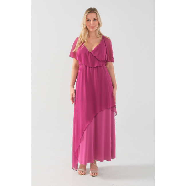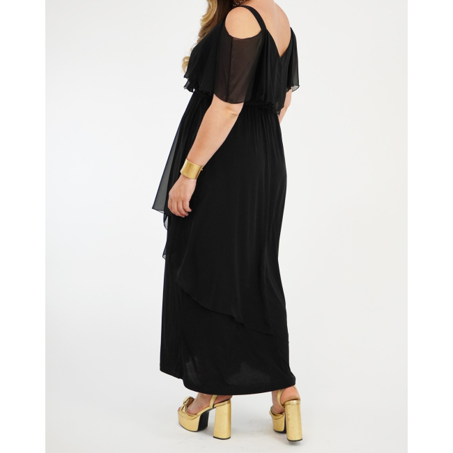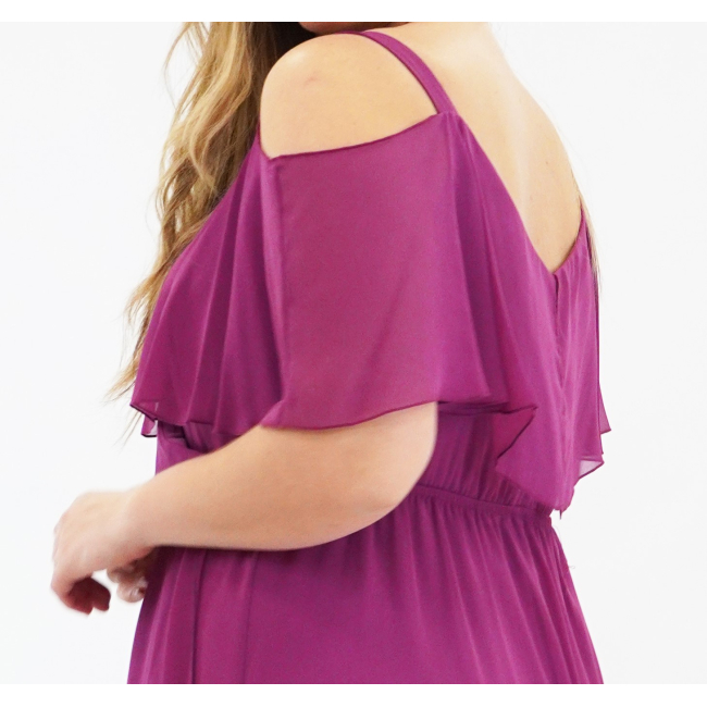 Φόρεμα μάξι Μουσελίνα εξωτερικά, κρουαζέ αμπίρ μπούστο, off shoulder ζαπονε μανίκια, Jersey φούστα σε Α άνετη γραμμή
