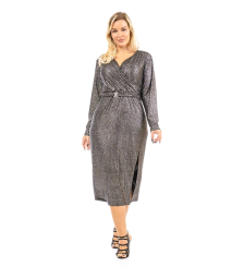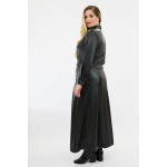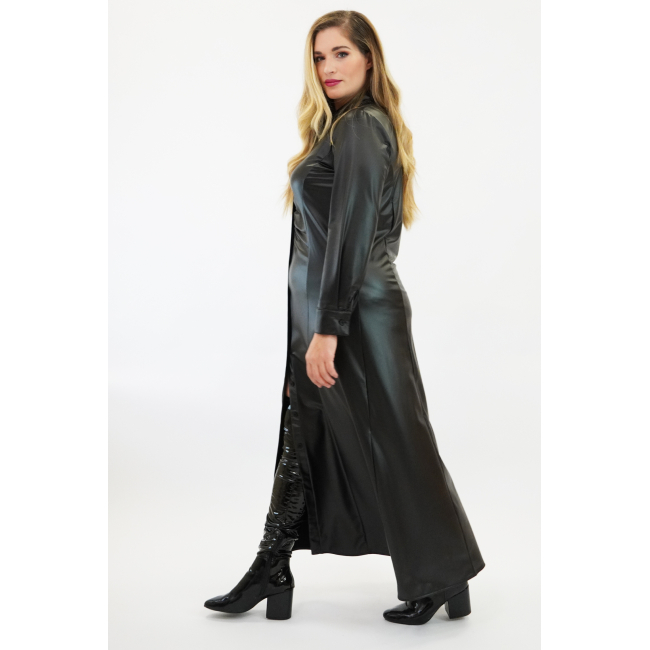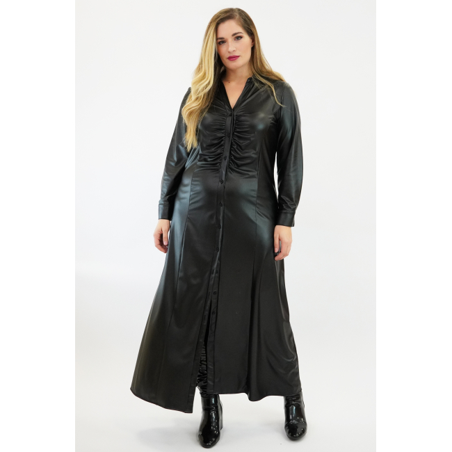 Φόρεμα μάξι, Cemisie, Αrtificial Leather, V ντεκολτέ, γιακάς, πατιλέτα, κουμπιά, μανίκια μανσέτα/κουμπί, ιδιαίτερο ντραπάρισμα στο στήθος για μια Μοναδική και Αέρινη εμφάνιση, σε Α πολύ άνετη γραμμή
