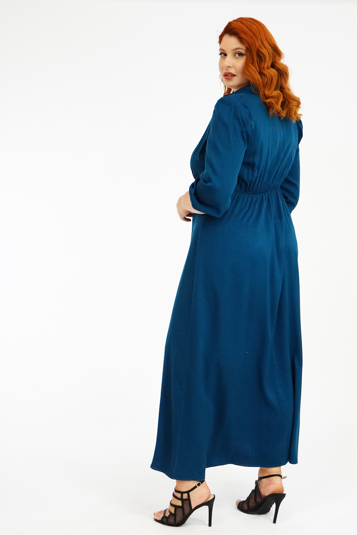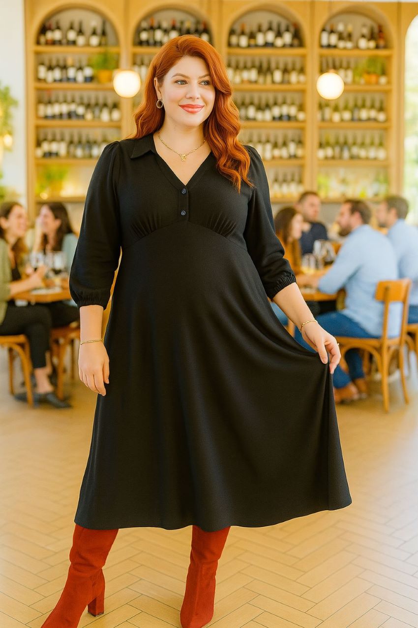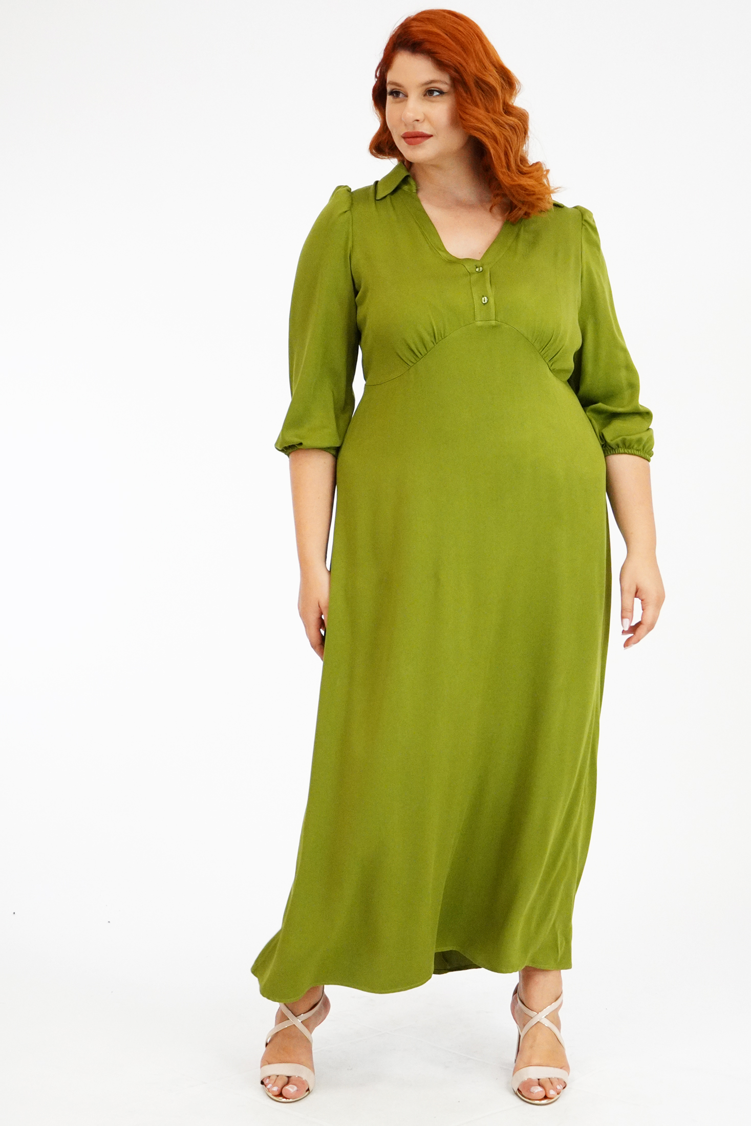 Φόρεμα Μάξι 100% Cotton, γιακάς, V ντεκολτέ με μικρή πατιλέτα και 2 κουμπιά, διακριτική ραφή μπροστά και ελαφρύ λάστιχο πίσω για καλύτερη εφαρμογή, σε Α πολύ άνετη εφαρμογή.