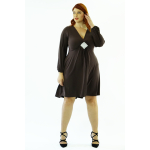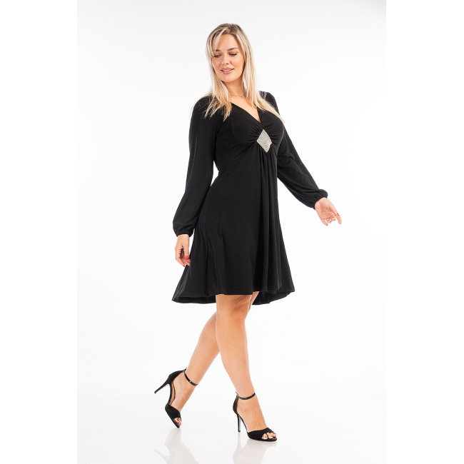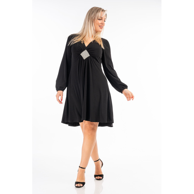 Φόρεμα midi σε Winter Viscose ύφασμα, V ντεκολτέ με ιδιαίτερο ασημί μοτίφ, διακριτική ραφή στη μέση και σούρα, μανίκια με λάστιχο στο τελείωμά τους, σε γραμμή που αγκαλιάζει με χάρη το σώμα μας χωρίς να κολλάει