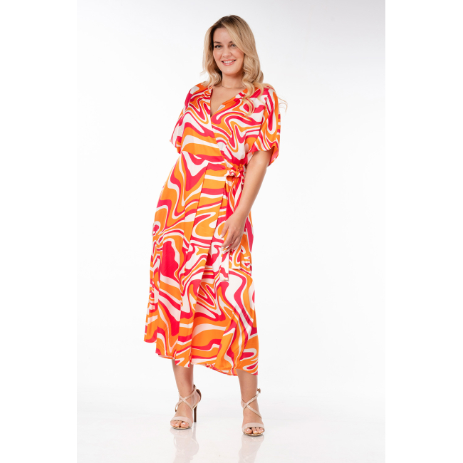 Cruise Sexy Midi Dress που αναδεικνύει την θηλυκότητά μας, σε σατέν ατσαλάκωτο ύφασμα, ελεύθερα μανίκια, σε άνετη γραμμή