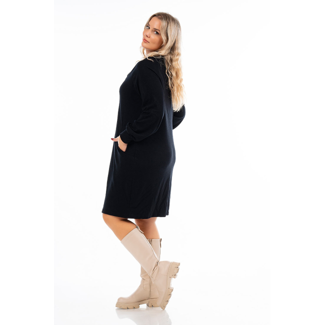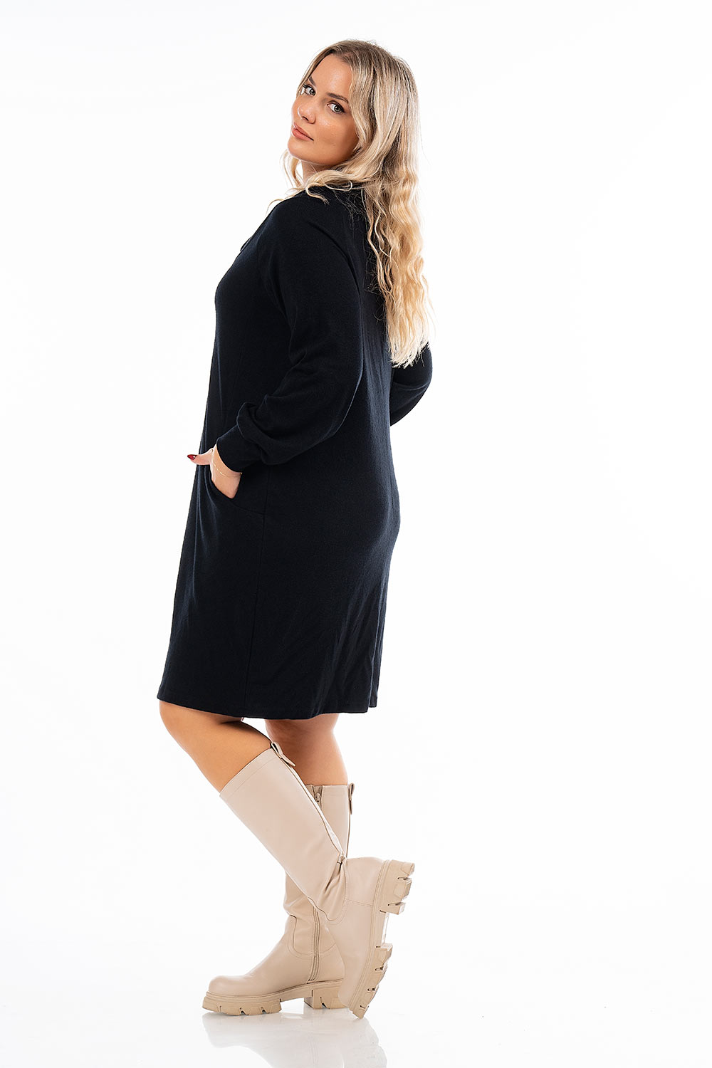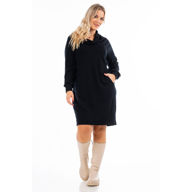 Φόρεμα μίντι ή αλλιώς μακρύ μπλουζοφόρεμα σε υπέροχο kashmir πλεκτό ύφασμα κοπής/ραφής (ελαστικό), ξεχειλωτός γιακάς, ρεγκλάν μανίκια με φάσα στο τελείωμά τους, φιλέτο τσέπες στο πλάϊ μπροστά, σε ίσια πολύ άνετη γραμμή