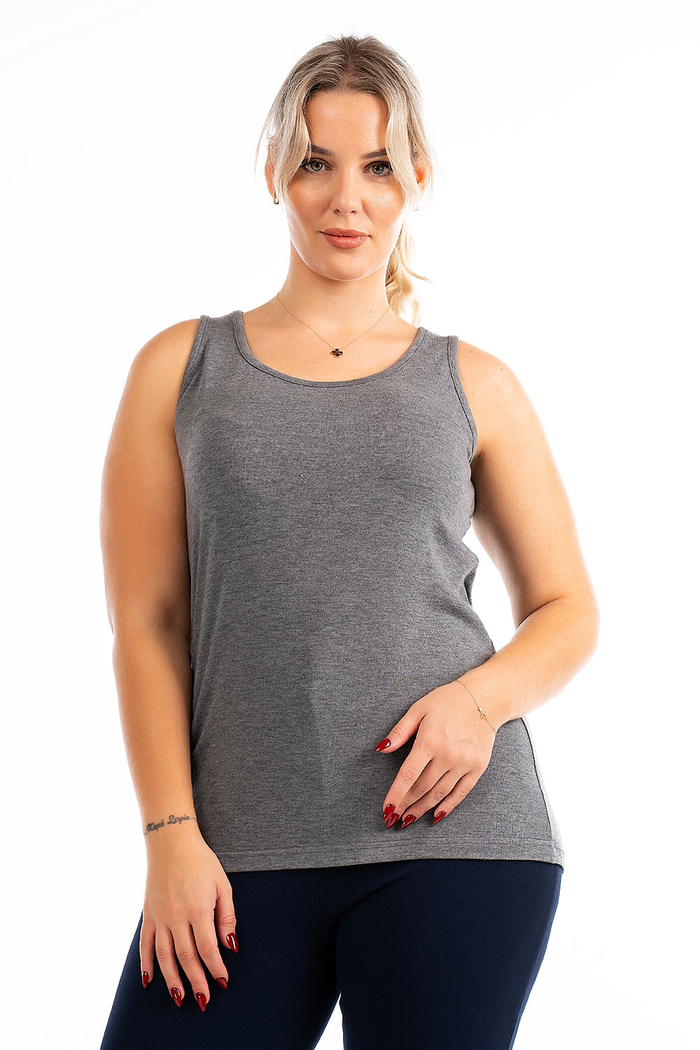 Μπλούζα σε πλεκτό κοπής/ραφής, φαρδιά τιράντα, στρογγυλό ντεκολτέ εμπρός/πίσω, σε ίσια πολύ άνετη γραμμή