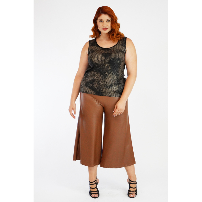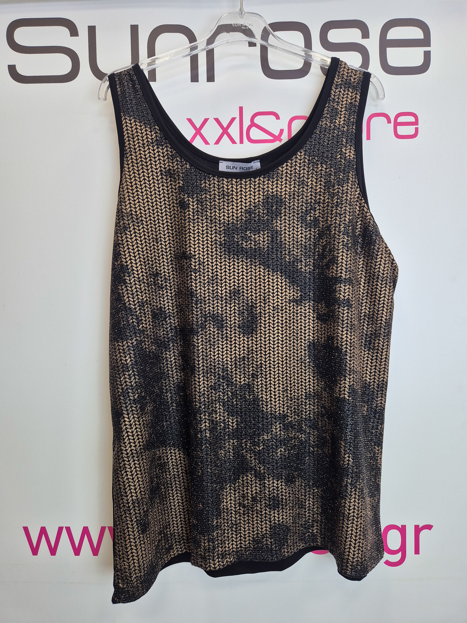 Τοπ με φινετσάτο Lurex ελαστικό ύφασμα μπροστά (Bronze/Olive), Jersey ελαστικό ύφασμα πίσω, σε ίσια πολύ άνετη γραμμή
