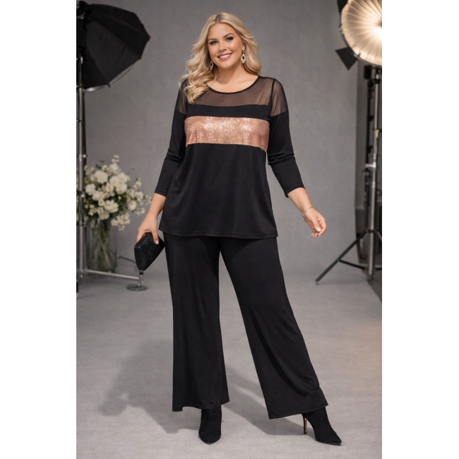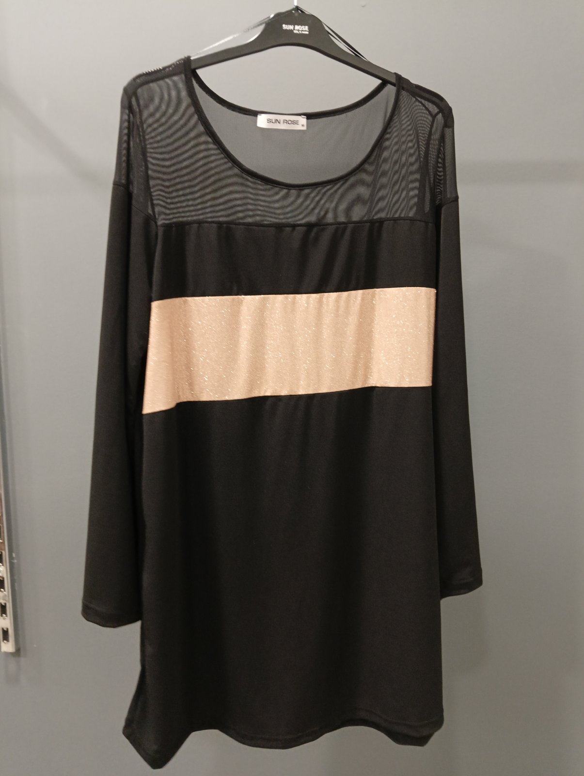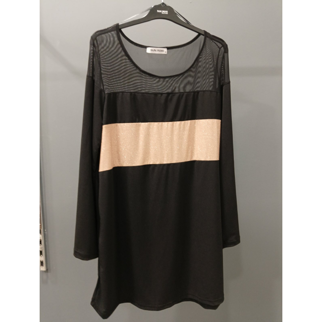 Εντυπωσιακή Μπλούζα Glitter/Δίχτυ σε ελαστικό ύφασμα, λαιμόκοψη, δίχτυ επάνω, Glitter φλασα στο σώμα, Jersey ελαστικό ύφασμα όλο το υπόλοιπο σώμα