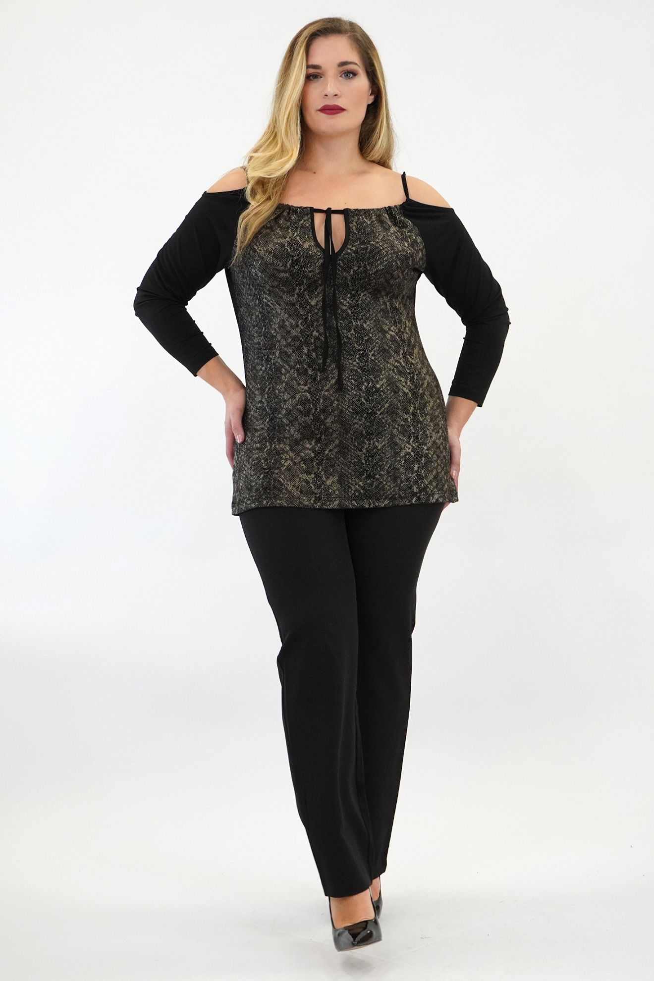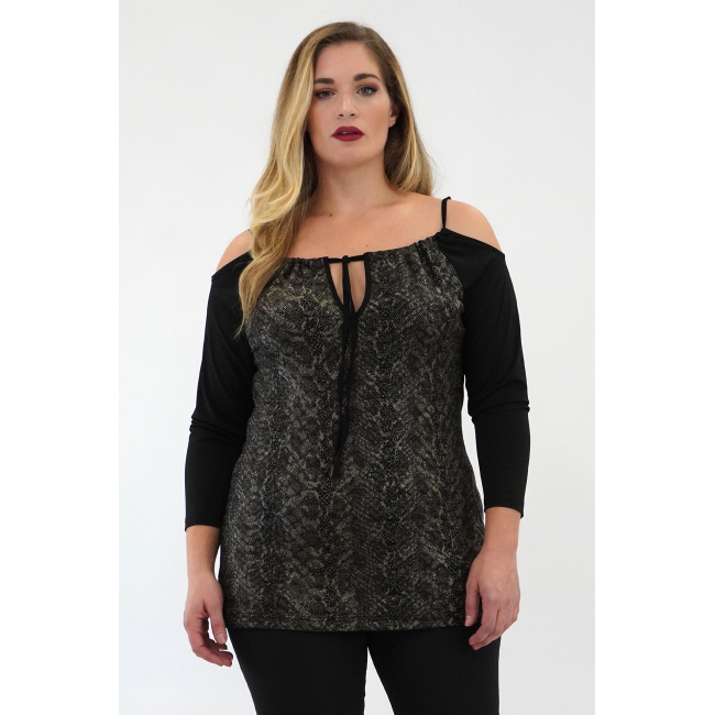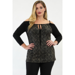 Μπλούζα Jersey, ανοιχτή λαιμόκοψη off shoulder, ανάγλυφο Lurex εμπριμέ μπροστά, σε Α άνετη και κομψή γραμμή.