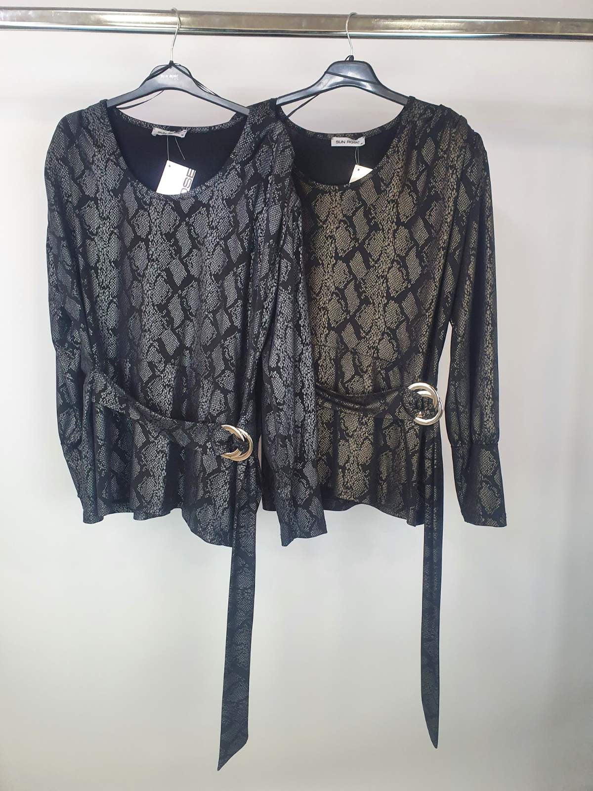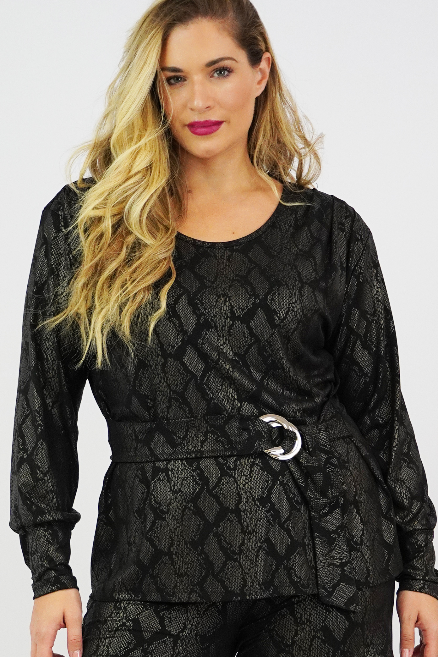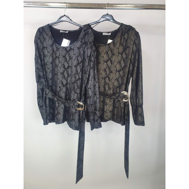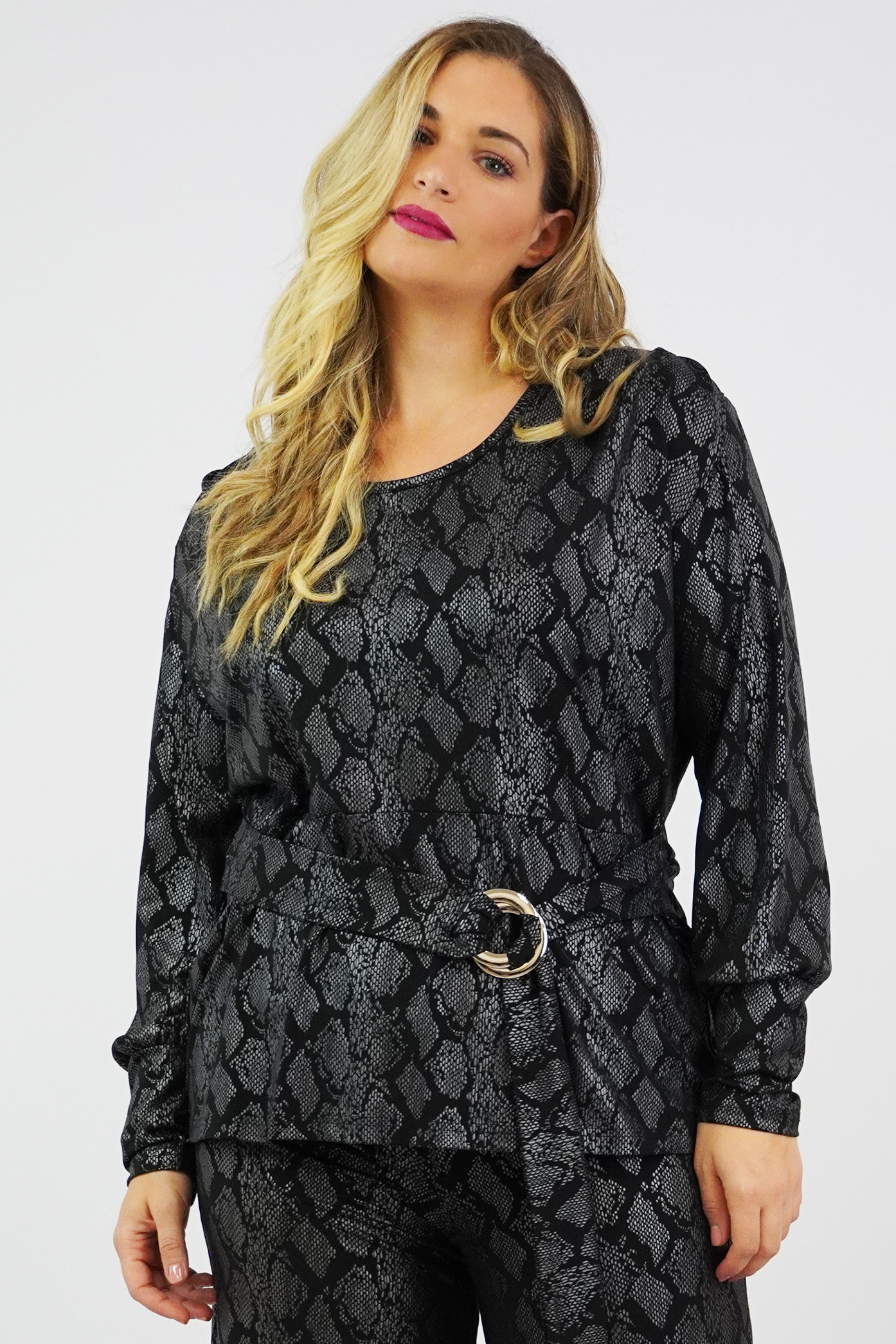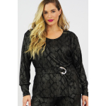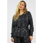 Μπλούζα Jersey, Animal Print, πιέτες στους ώμους & βάτα, διακοσμητική ζώνη με αγκράφα, σε ίσια άνετη γραμμή.