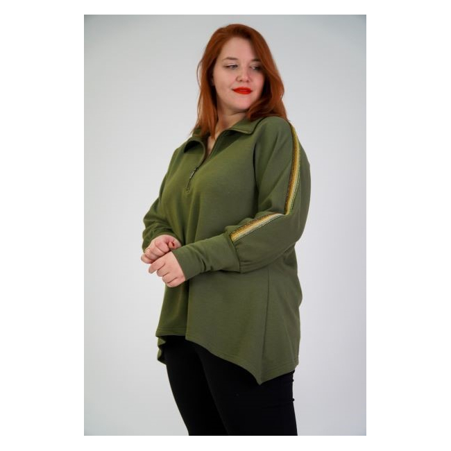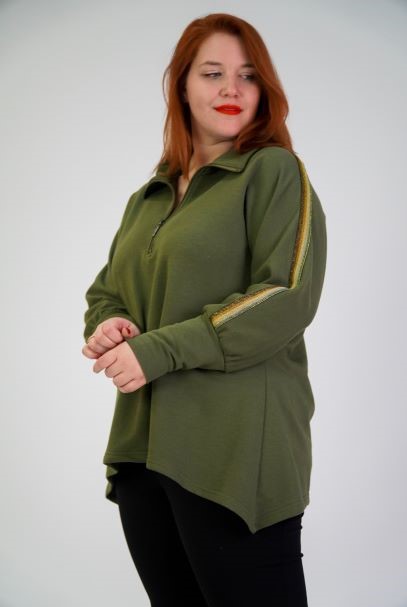 Μπλούζα Φούτερ, Μάο γιακά με φερμουάρ ως το στήθος, ζαπονέ μανίκι με τρέσα στο πλάι, μύτες στα πλαϊνα, σε Απολύ άνετη γραμμή