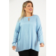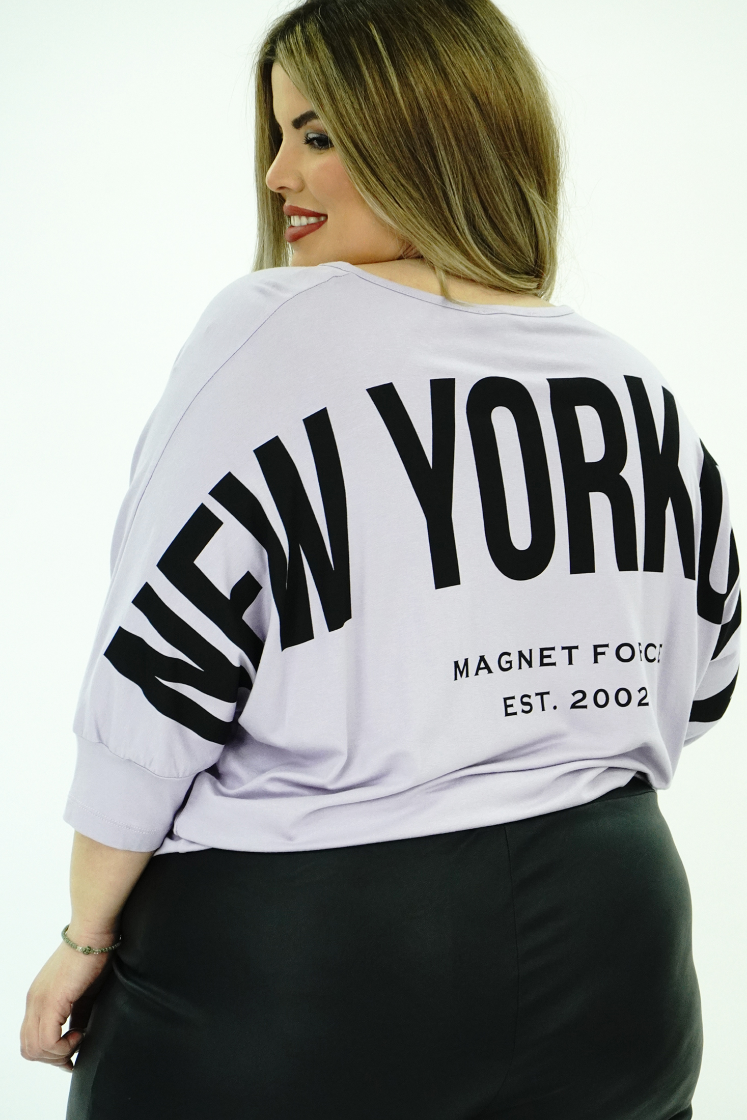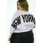 Μπλούζα Viscose - Oversize, λαιμόκοψη V με διακοσμητικό ρέλι, ιδιαίτερο τύπωμα την πλάτη "Νew York", τρουακάρ μανίκια, μπάσκα στο τελείωμα σε άνετη γραμμή