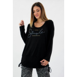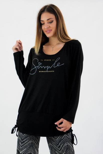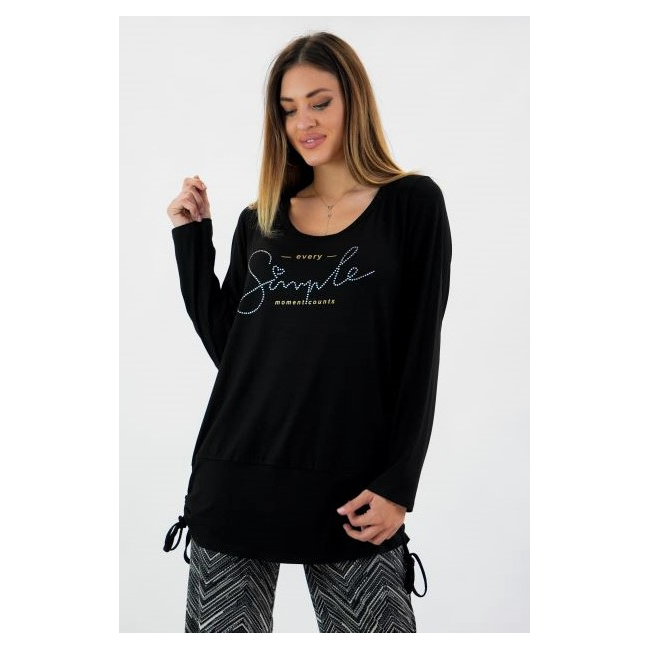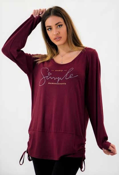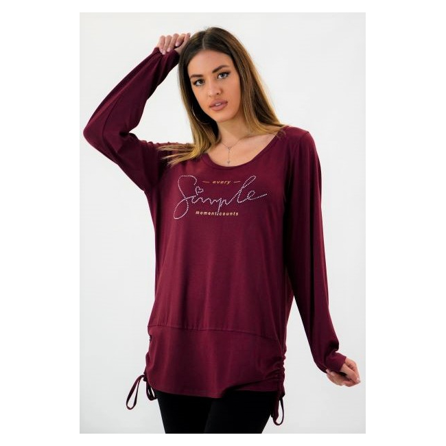Μπλούζα Viscose, στρογγυλή ανοιχτή λαιμόκοψη, στάμπα εμπρός "Simple", μεγάλη μπάσκα στο κάτω μέρος με εσωτερικό κορδόνι για την αυξομείωσή της