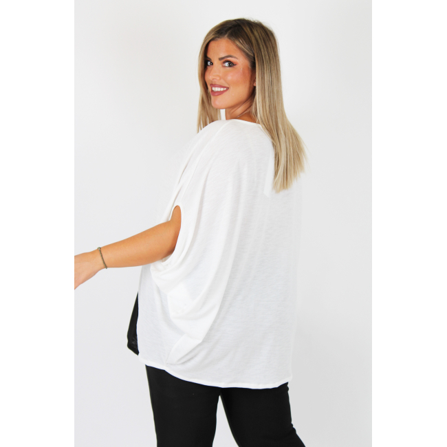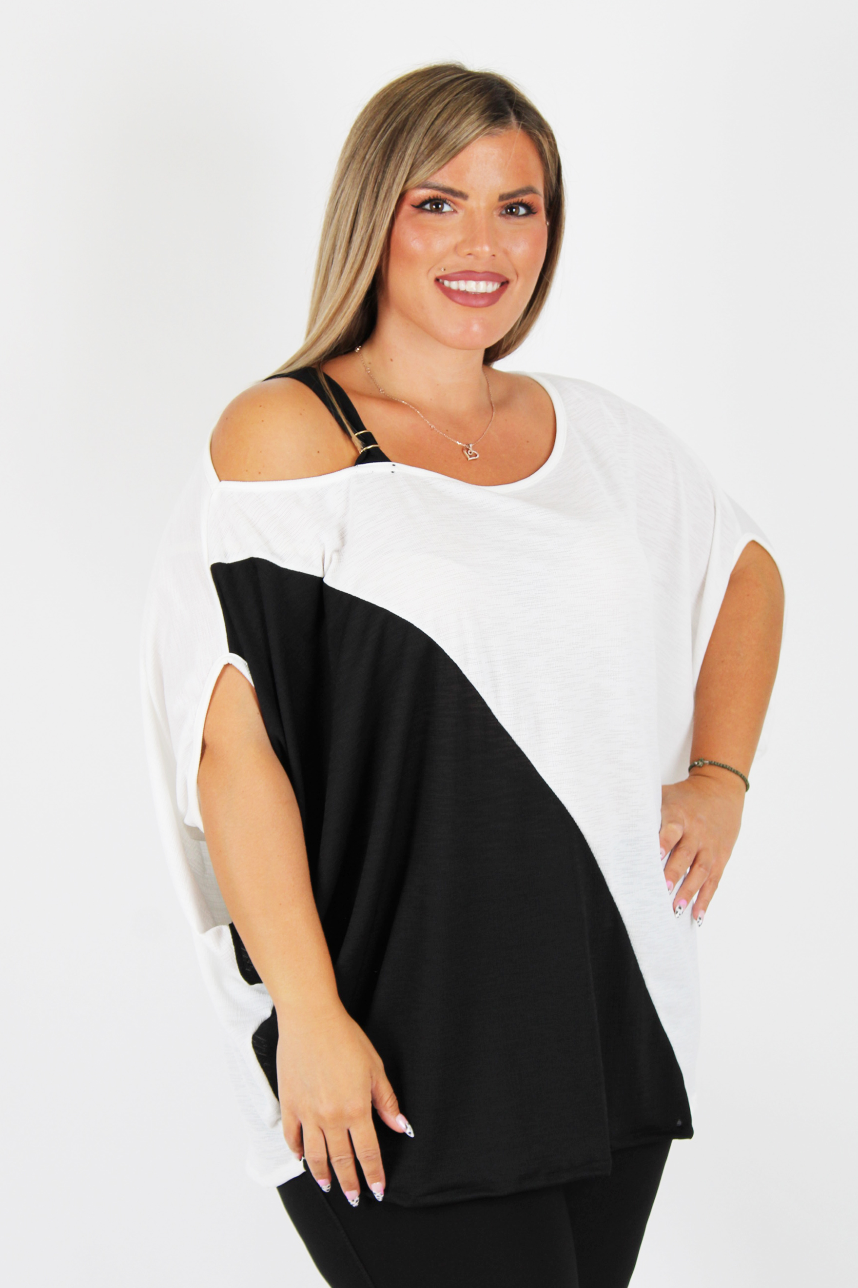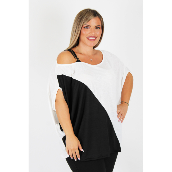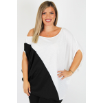 Μπλούζα/Τουνίκ bubble Crep, off shoulder ντεκολτέ και τιράντα με strass στολίδι, ανάποδα μανίκια, σε buggy style πολύ άνετη γραμμή
