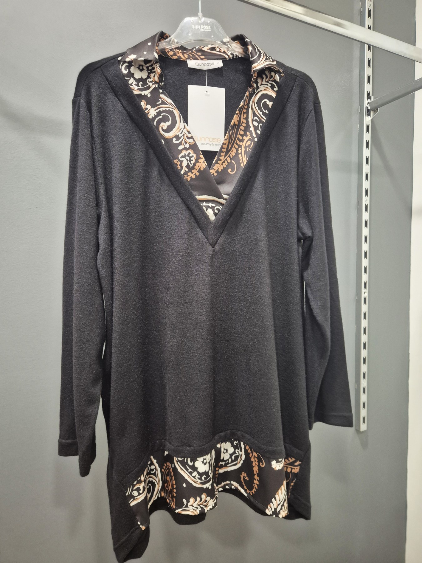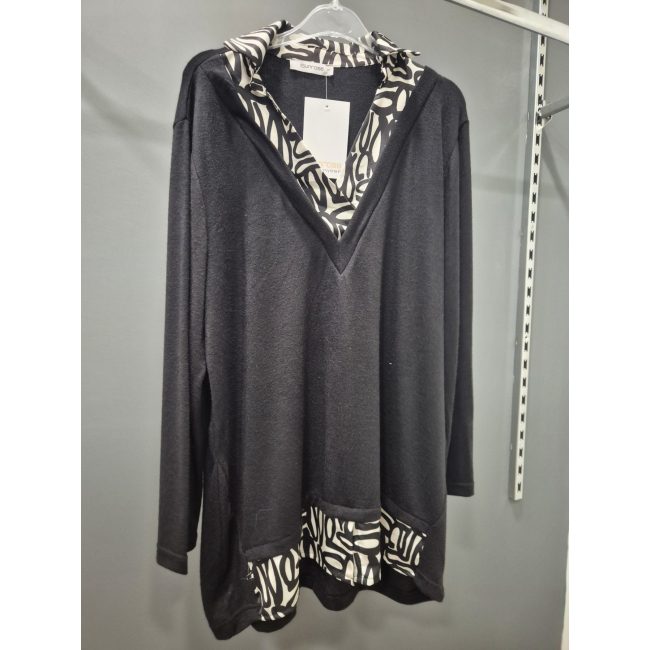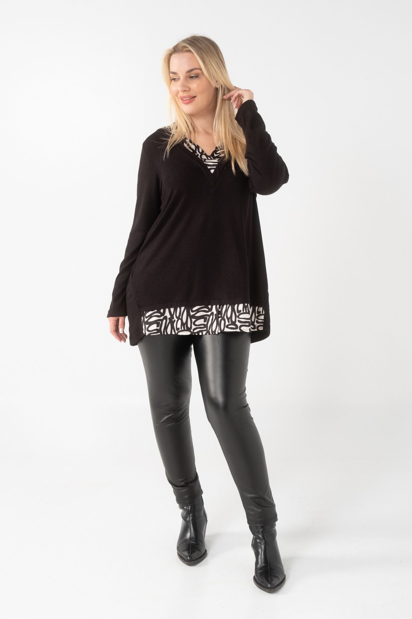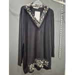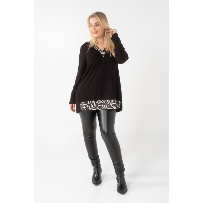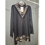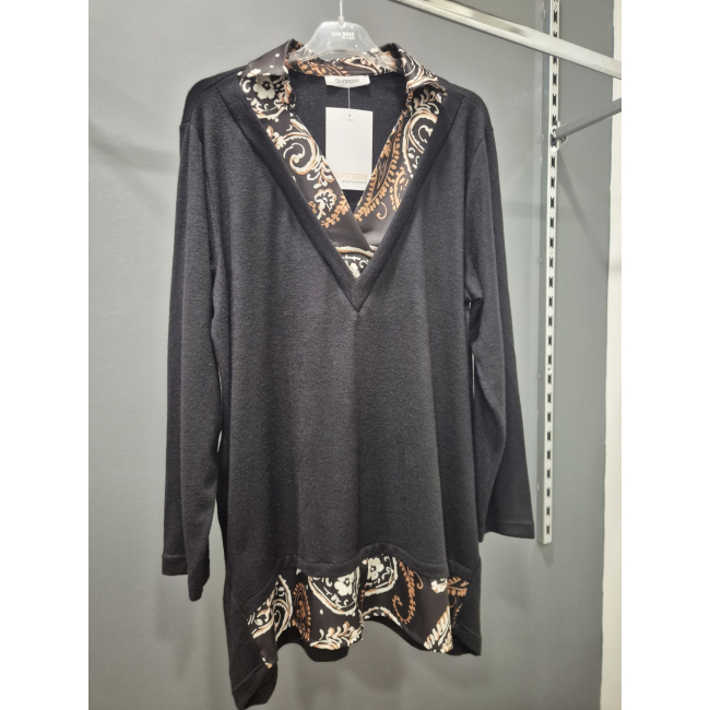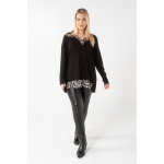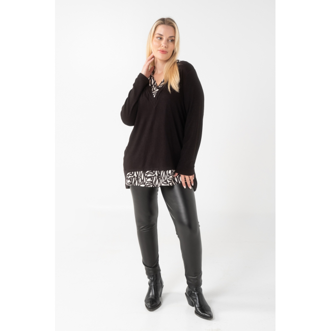 Πουλόβερ (Μπλούζα) oversize, σε πλεκτό κοπής/ραφής, V ντεκολτέ με σατέν γιακά και φάσα, σε πολύ άνετη γραμμή, σατέν φάσα στο τελείωμα της μπλούζας