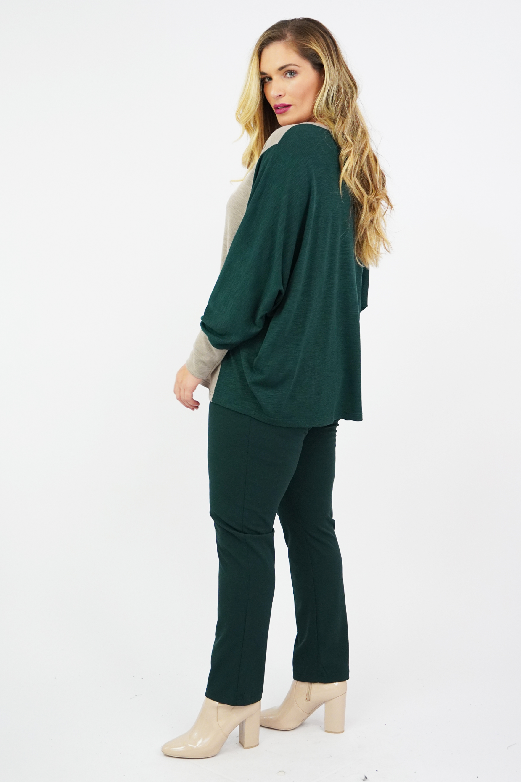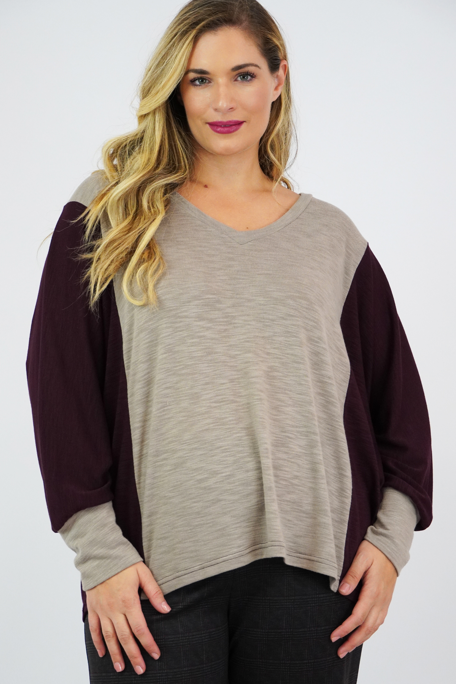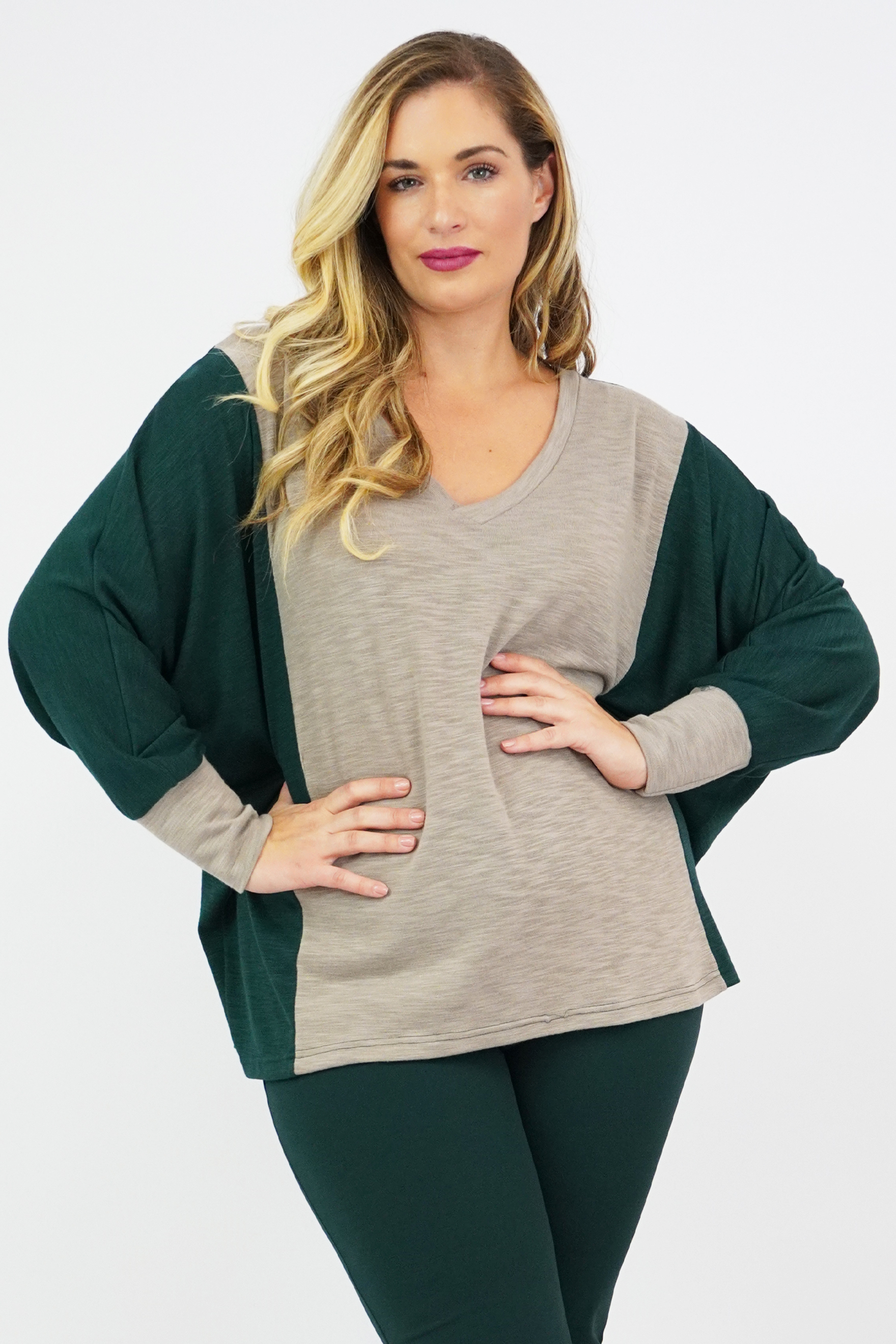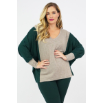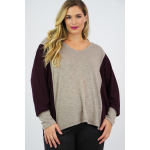 Μπλούζα δίχρωμη oversize, πλεκτό κοπής/ραφής, V ντεκολτέ, ζαπονέ μανίκια με μανσέτα, σε πολύ άνετη γραμμή