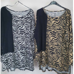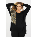 Μπλούζα oversize, δίχρωμη, σε πλεκτό κοπής/ραφής, ανοιχτή λαιμόκοψη, ζαπονέ μανίκια με μανσέτα, διακριτικά σκισίματα στο πλάι, σε Α πολύ άνετη γραμμή