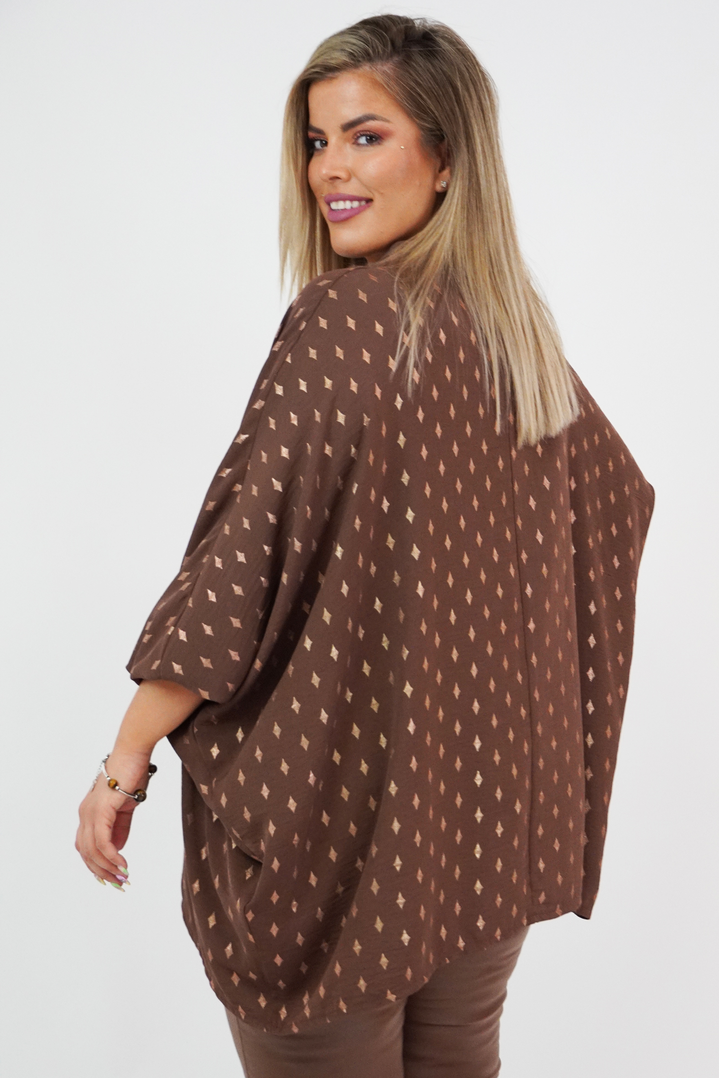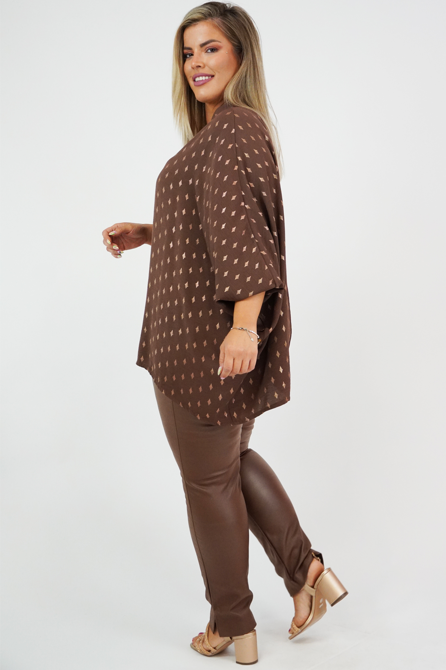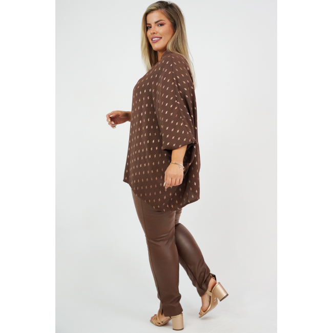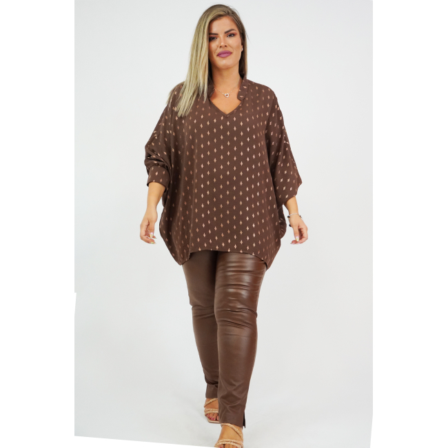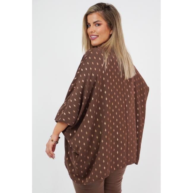 Μπλουζοφόρεμα σε Viela, oversize και onesize, Μάο γιακά, V ντεκολτέ, bronze σχέδιο "ρόμβους" στο ύφασμα, σε ίσια πολύ άνετη γραμμή