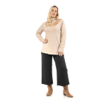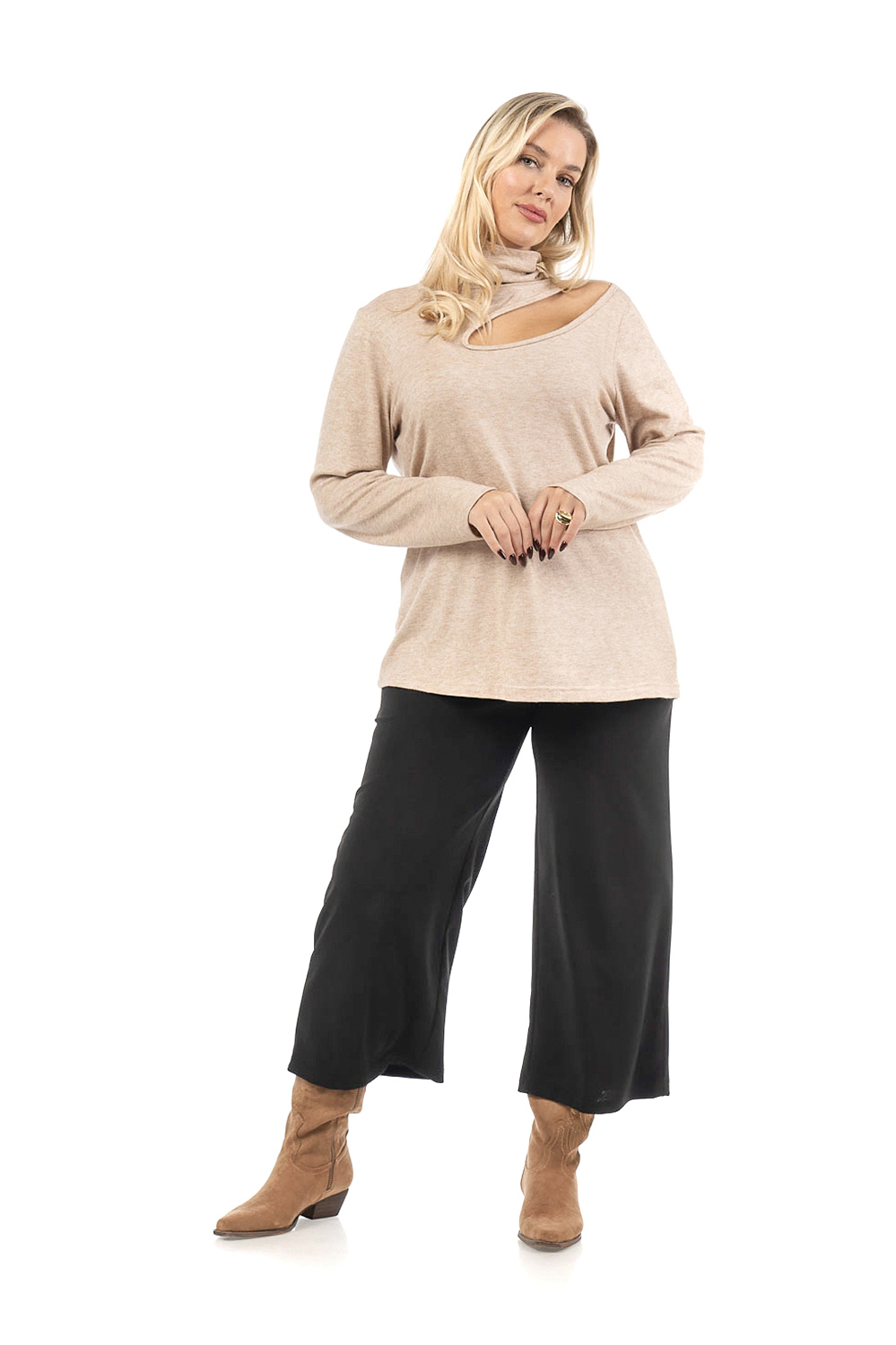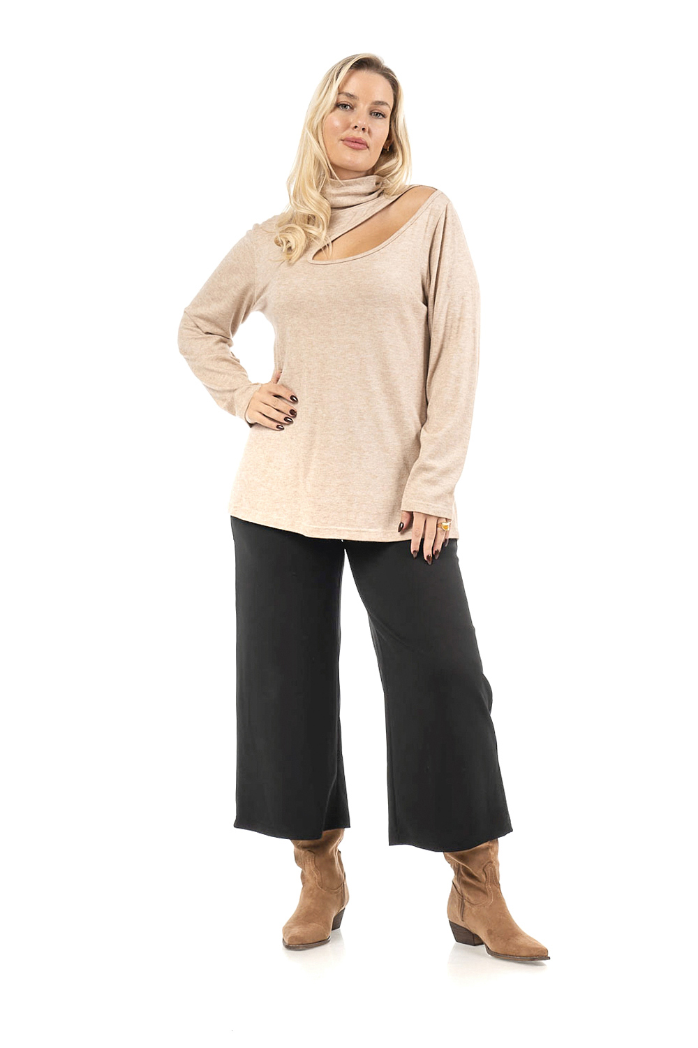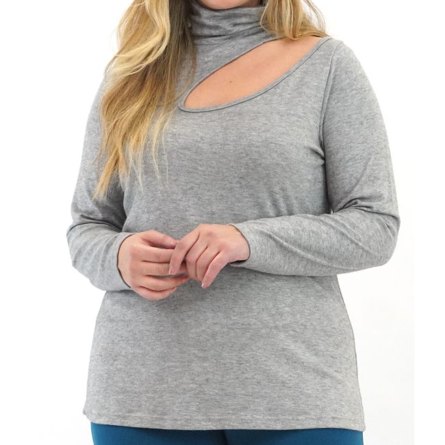 Μπλούζα σε υπέροχο πλεκτό κοπής/ραφης ύφασμα με υπέροχη υφή, άνετο ζιβάγκο, άνοιγμα δάκρυ στη μια πλευρά, ίσια μανίκια, σε πολύ άνετη γραμμή
