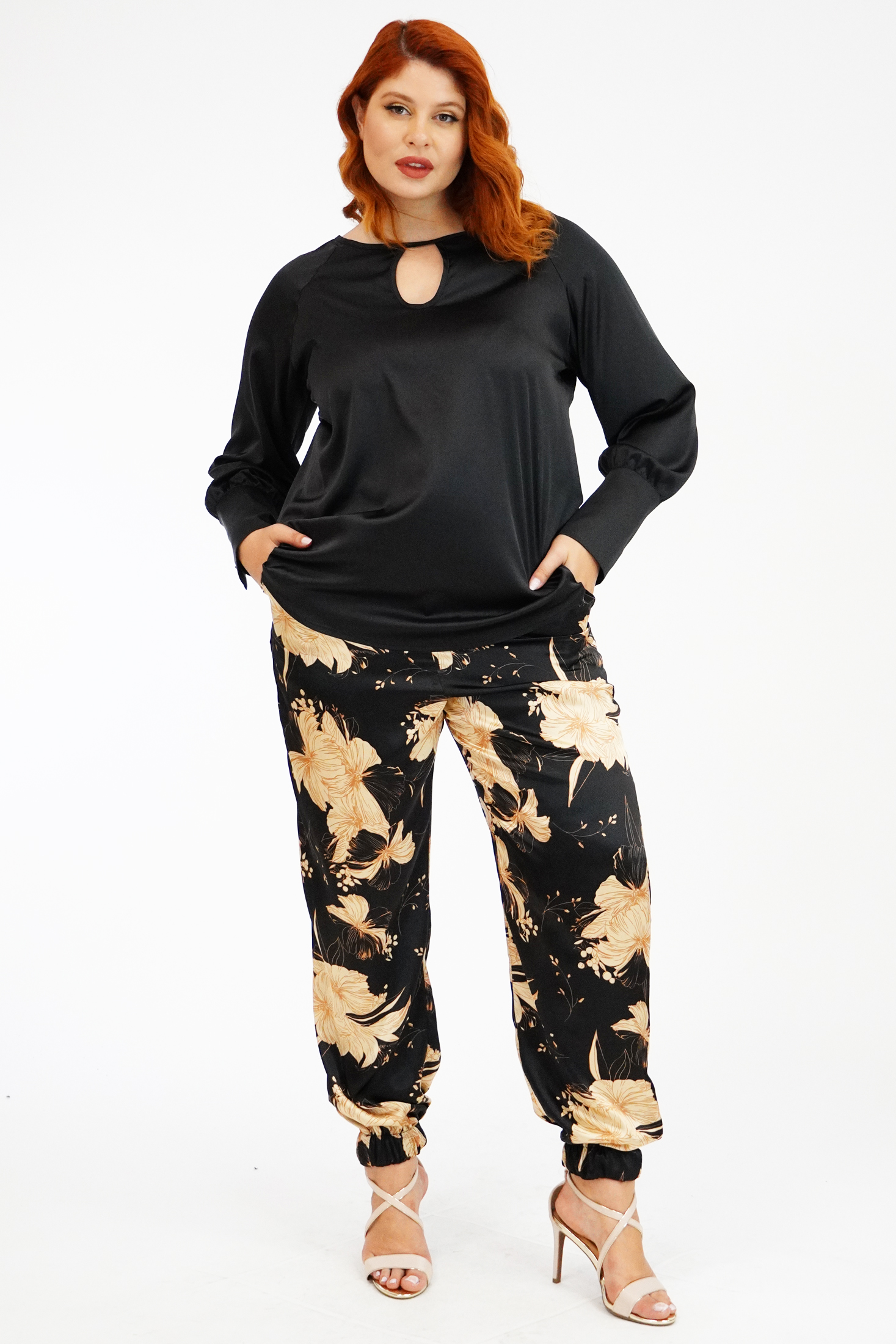 Μπλούζα σατέν, στρογγυλή λαιμόκοψη με άνοιγμα δάκρυ μπροστά, ρεγκλάν μανίκια με μανσέτα και κουμπιά, σε ίσια πολύ άνετη γραμμή