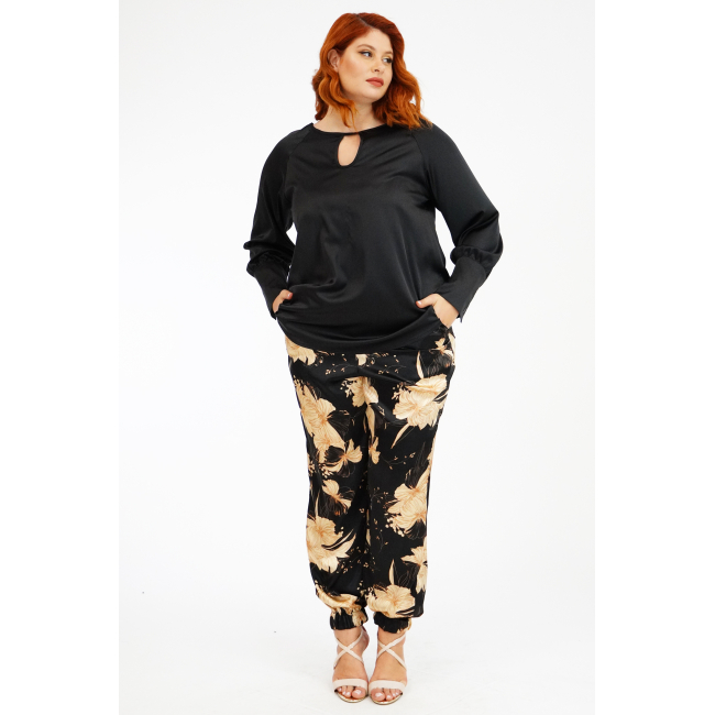 Μπλούζα σατέν, στρογγυλή λαιμόκοψη με άνοιγμα δάκρυ μπροστά, ρεγκλάν μανίκια με μανσέτα και κουμπιά, σε ίσια πολύ άνετη γραμμή