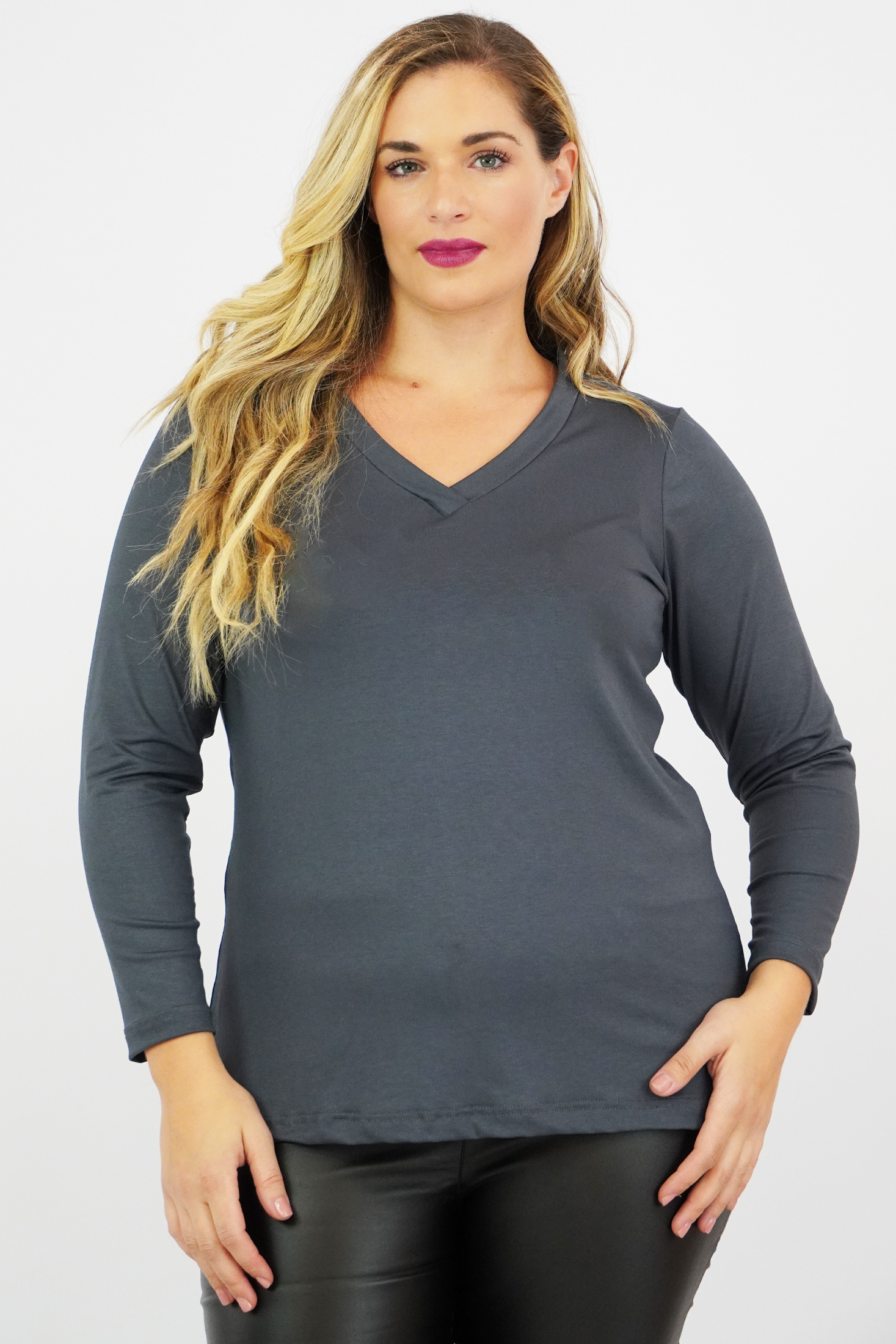 Μπλούζα Viscose, άνιση, V ντεκολτέ, διακριτικό σκίσιμο στα πλαϊνά, σε Α πολύ άνετη γραμμή