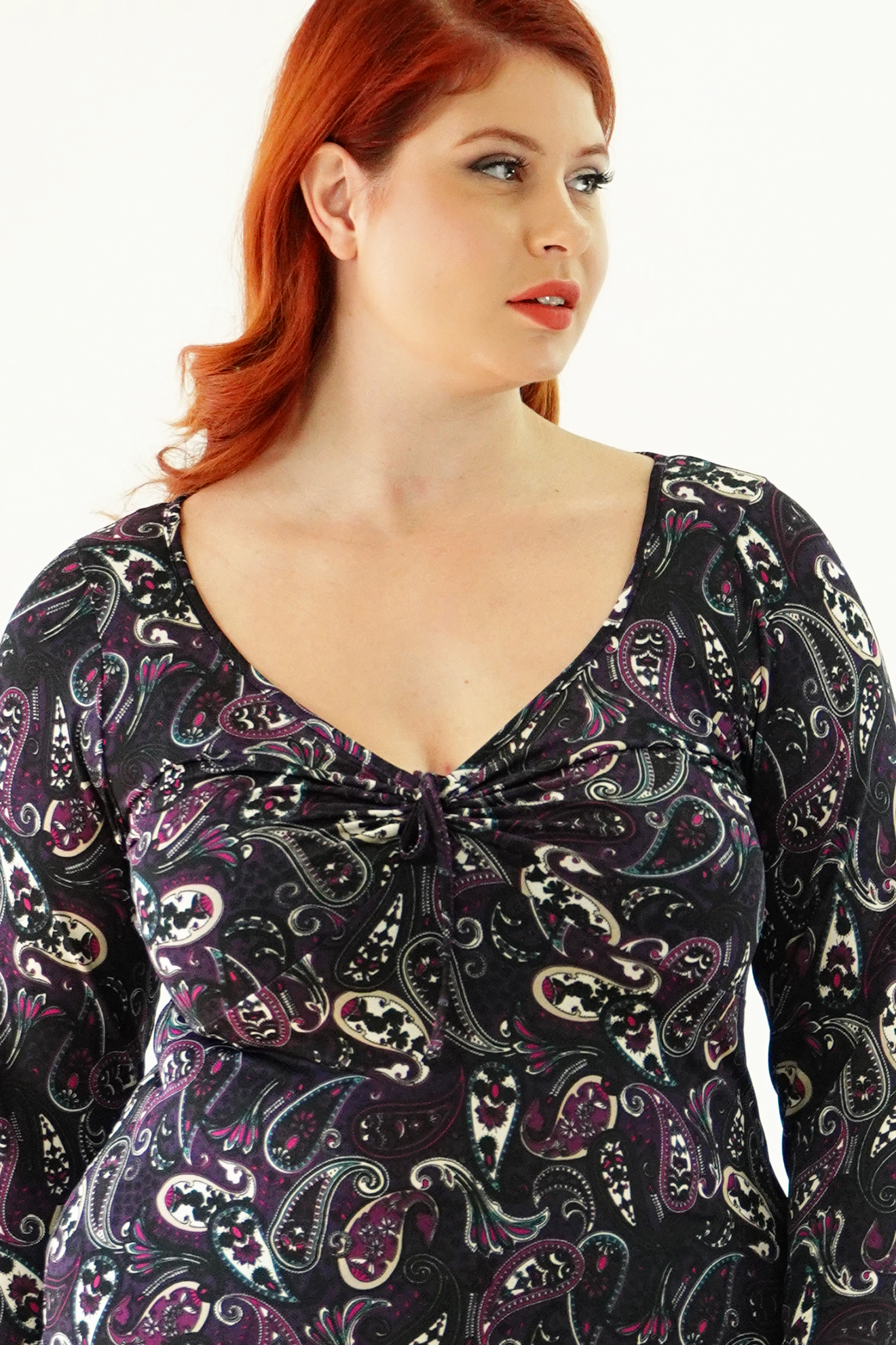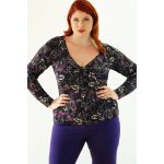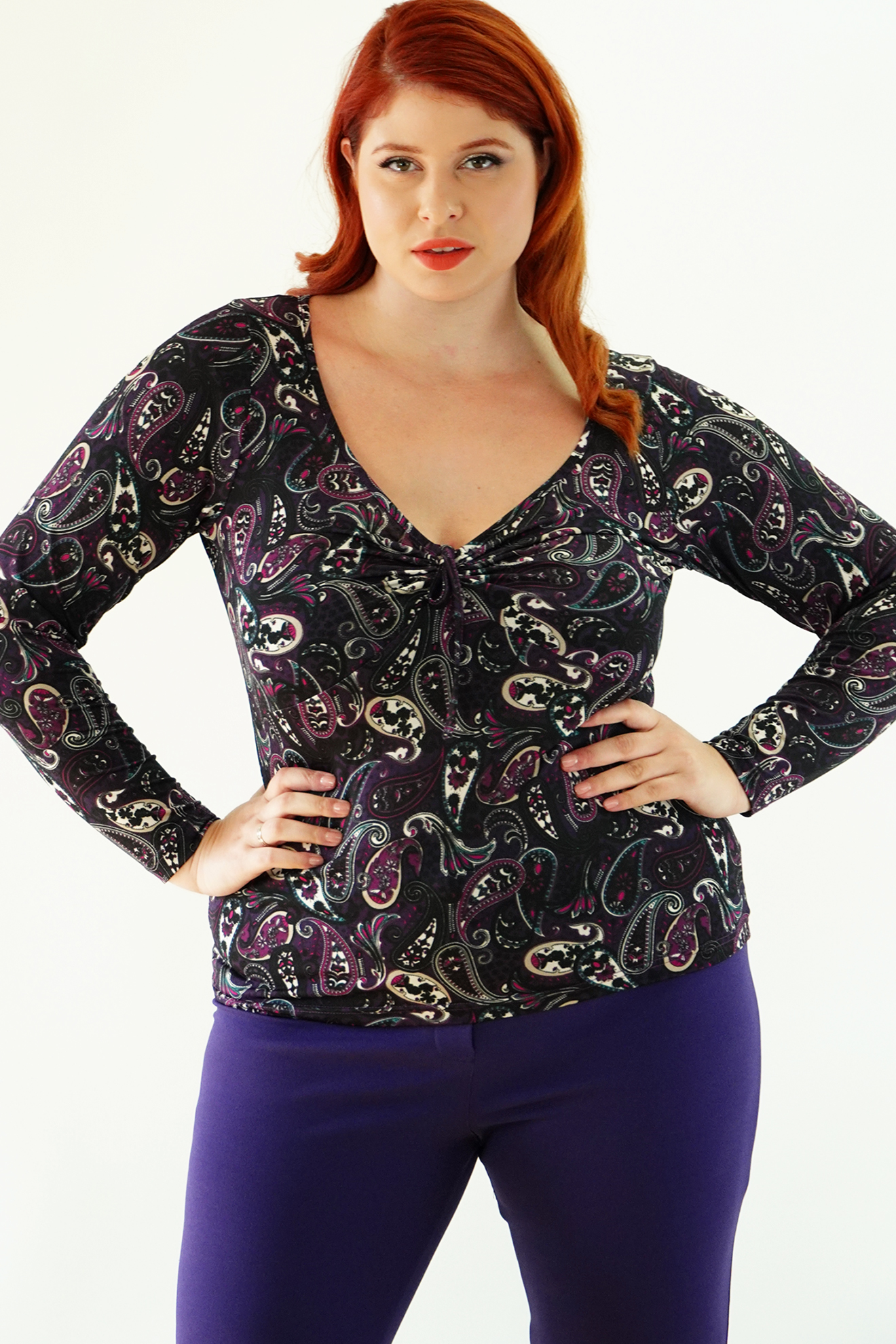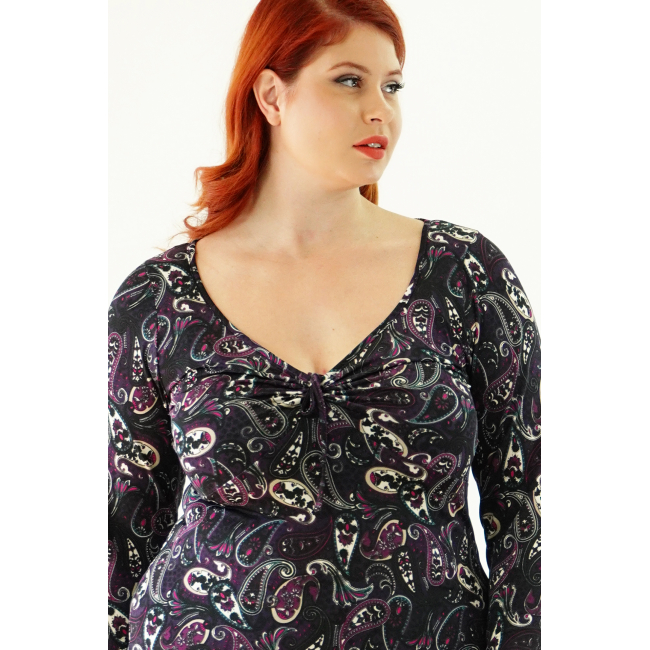 Μπλούζα εμπριμέ, Gro Jersey ύφασμα, ανοιχτή λαιμόκοψη με χιαστί διακοσμητικό ρέλι στο ντεκολτέ και άνοιγμα "δάκρυ", σε άνετη γραμμή που αγκαλιάζει το σώμα, μπορεί να φορεθεί με 2 τρόπους, κόβοντας την κλωστή που ενώνει τα χιαστί ρέλια στους ώμους, τα δένετε μπροστά στο μπούστο και έχετε μια εντελώς διαφορετική μπλούζα με εκπληκτικό μπούστο