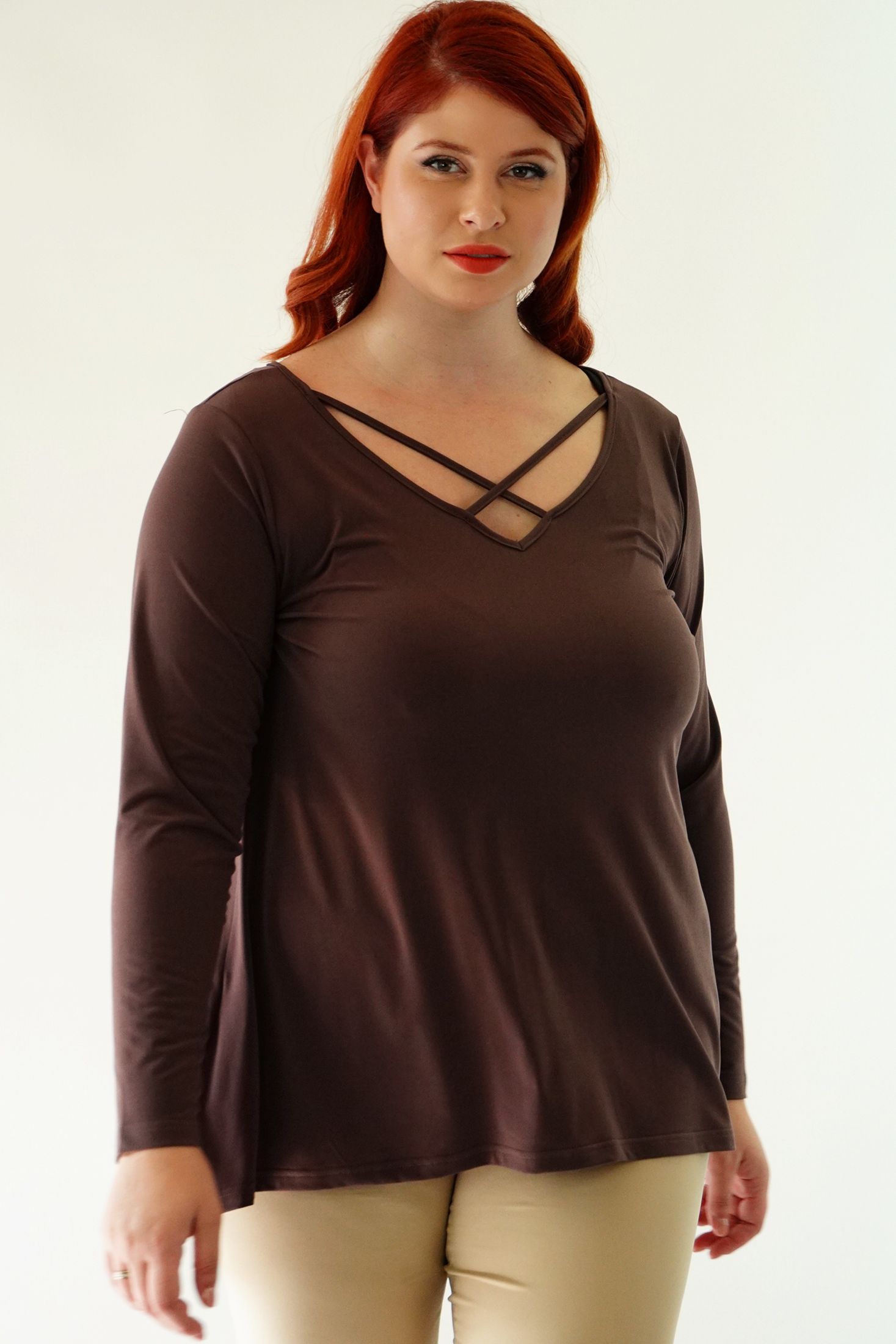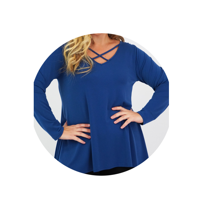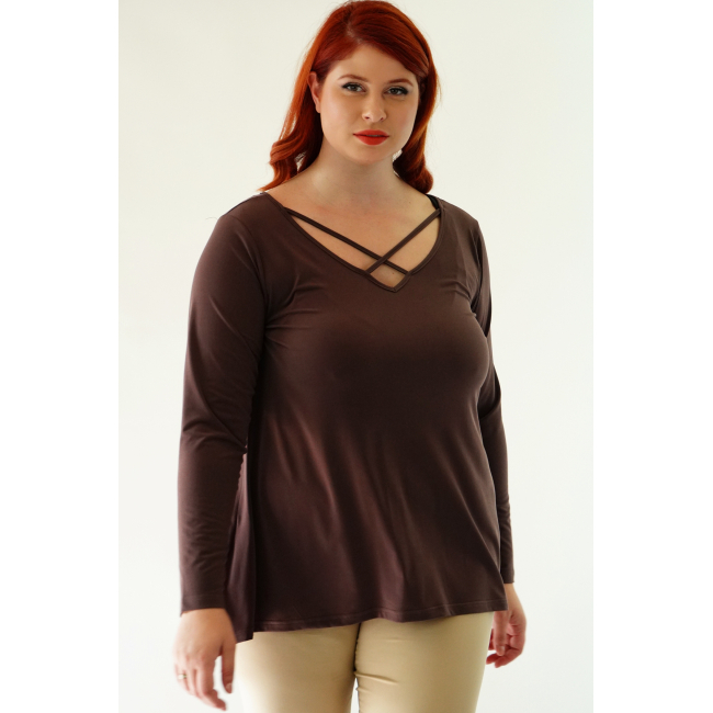Μπλούζα Μοss, άνιση, V ντεκολτέ με χιαστί διακοσμητικό ρέλι, σε Α πολύ άνετη γραμμή