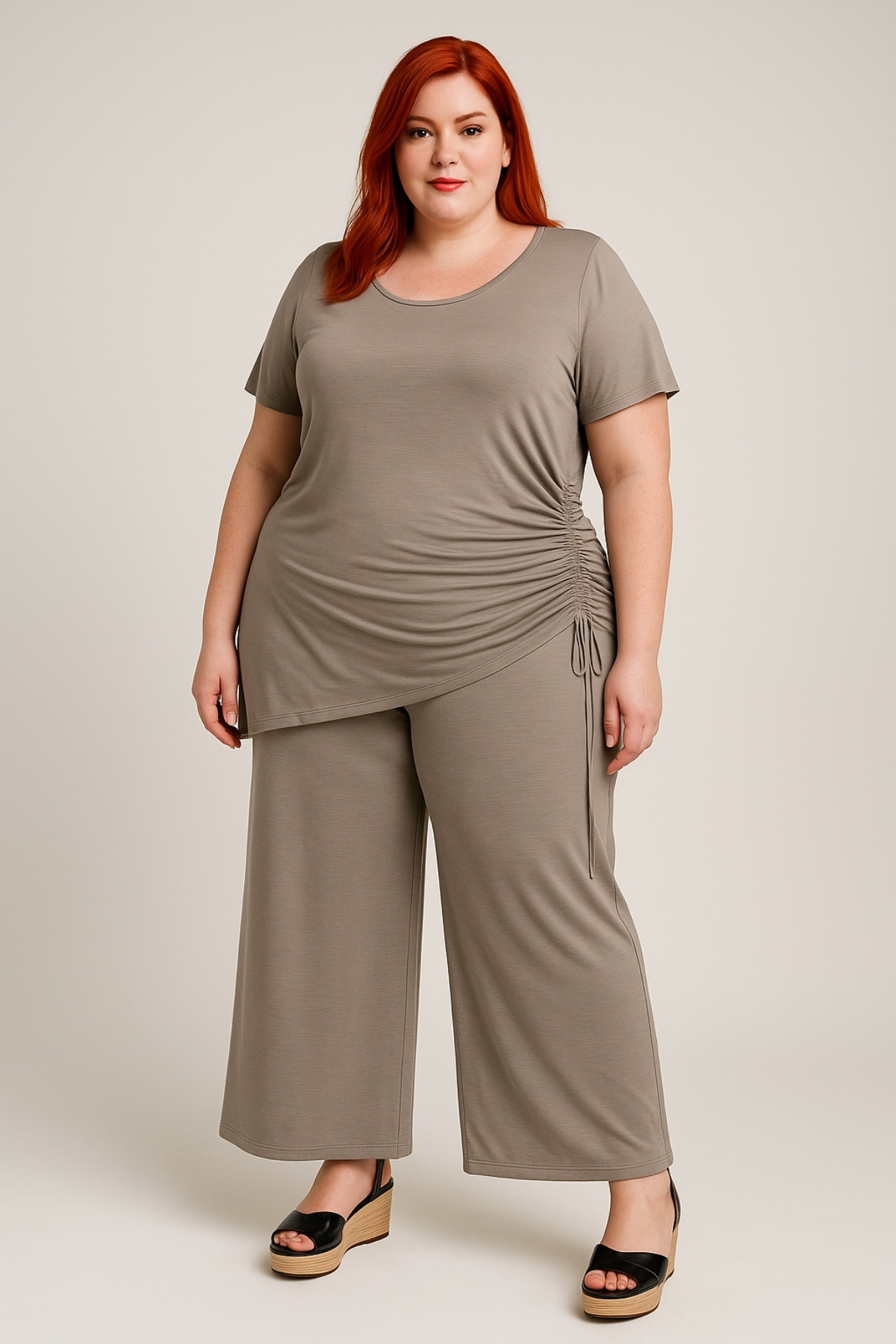Μπλουζοφόρεμα σε Rayon ελαστικό ύφασμα, στρογγυλή λαιμόκοψη, εσωτερικό τούνελ στην αριστερή πλευρά για την αυξομείωση που εσείς θέλετε. Σε ίσια πολύ άνετη γραμμή