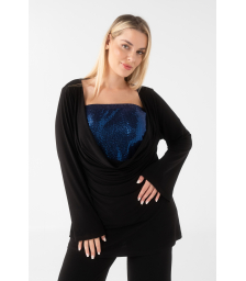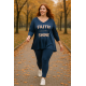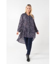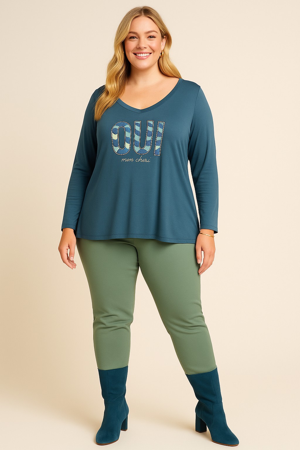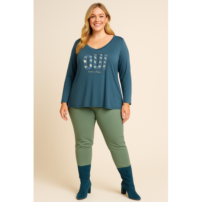 Μπλούζα Viscose μακριά, άνιση, V ντεκολτέ, τύπωμα "OUI" μπροστά, άνετα μανίκια, σε Α πολύ άνετη γραμμή
