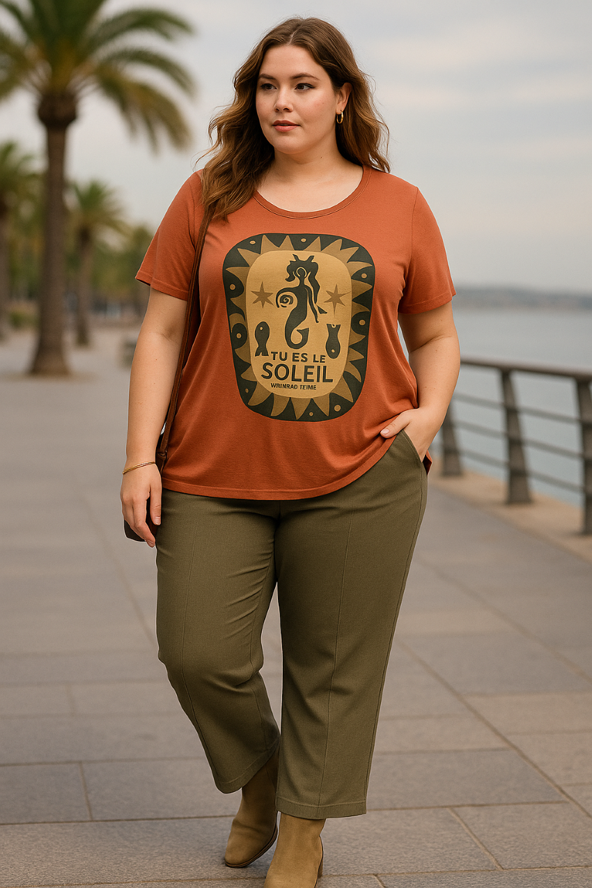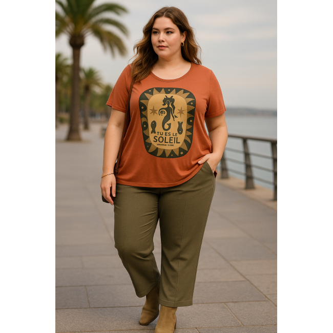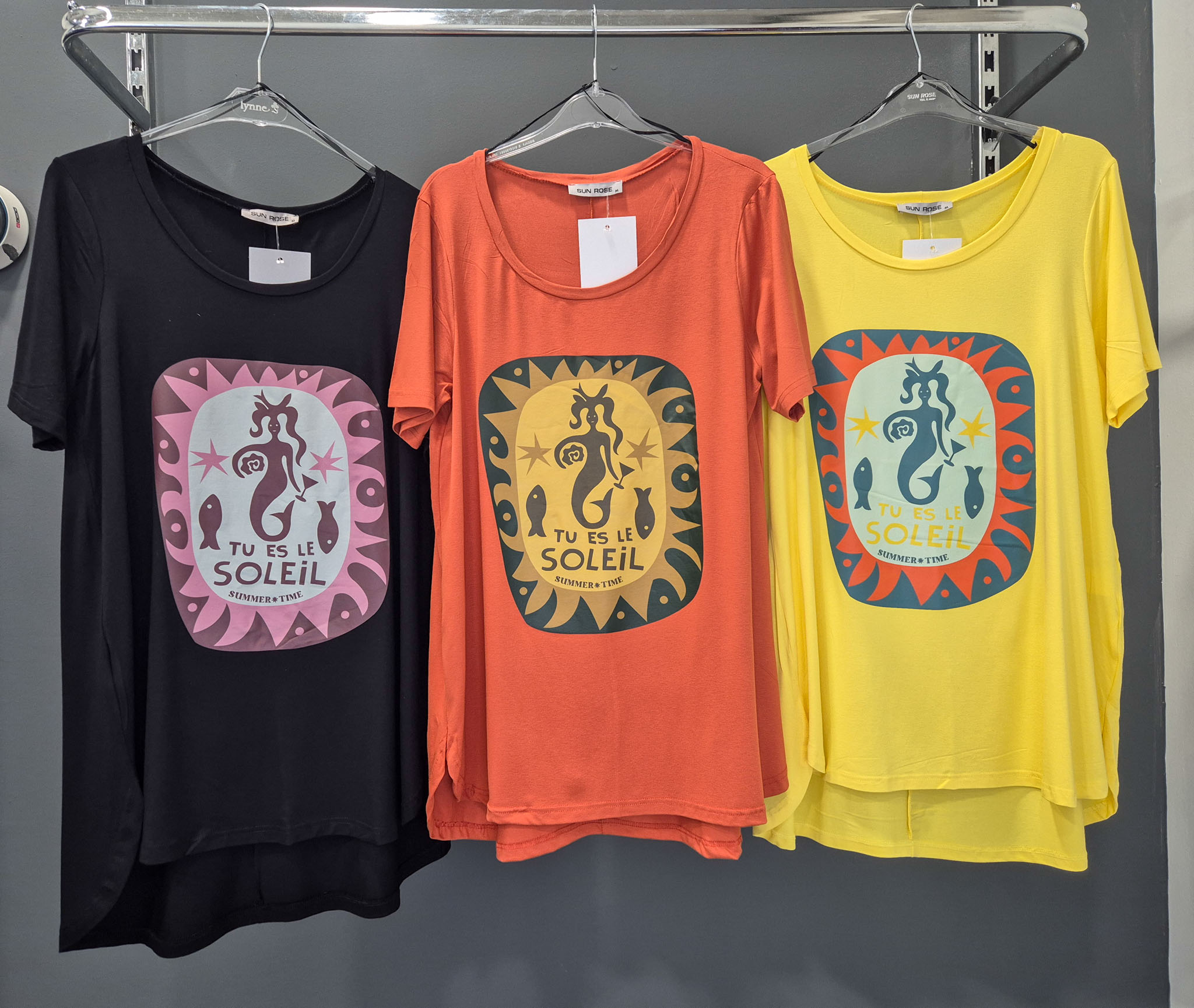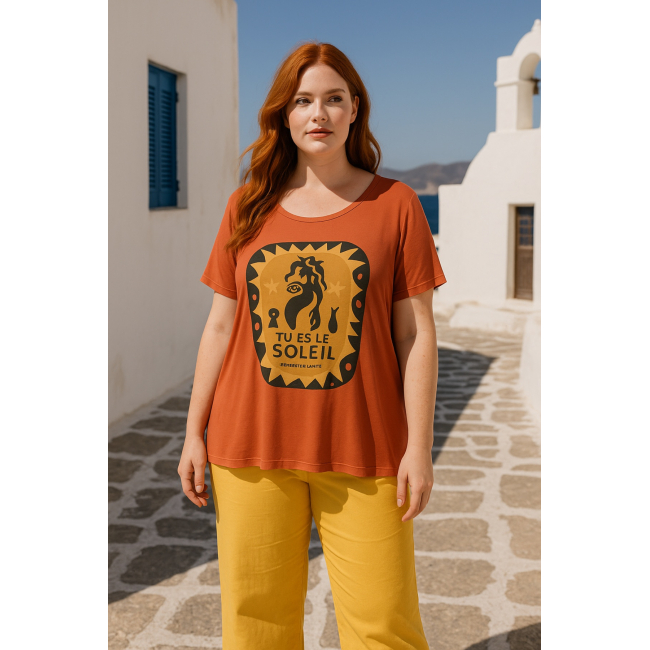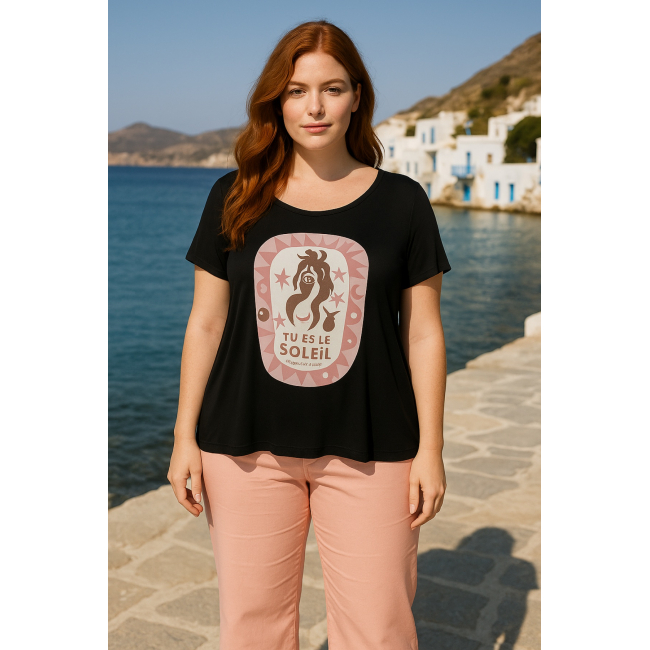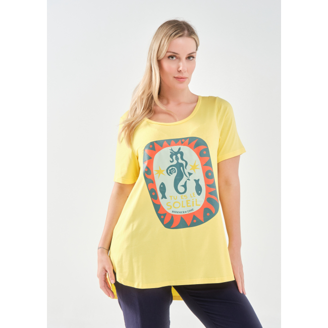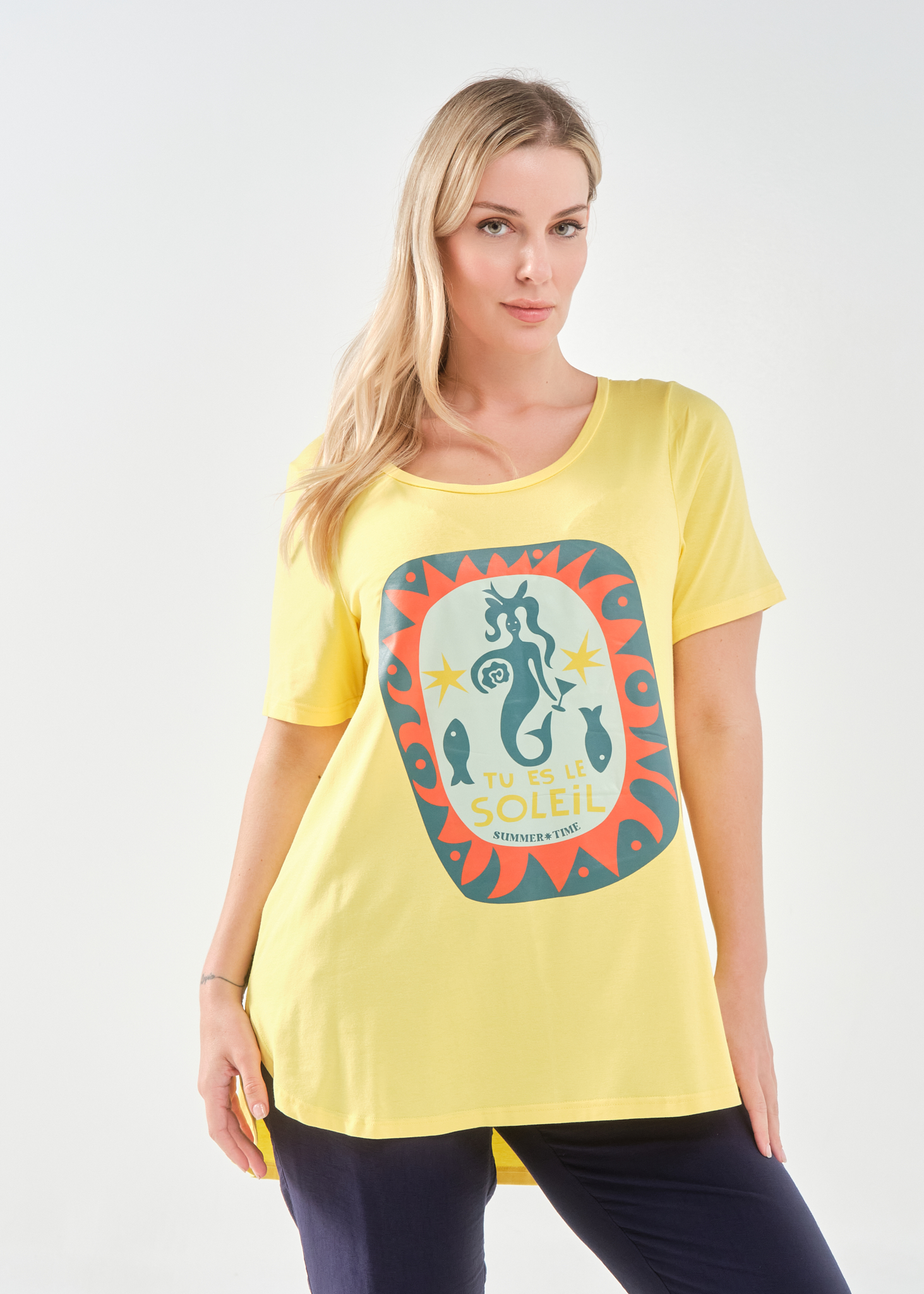 Μπλούζα (μπλουζοφόρεμα) Viscose με τύπωμα "μέδουσα" μπροστά, ανοιχτή λαιμόκοψη, στρογγυλό τελείωμα, σε ίσια άνετη γραμμή