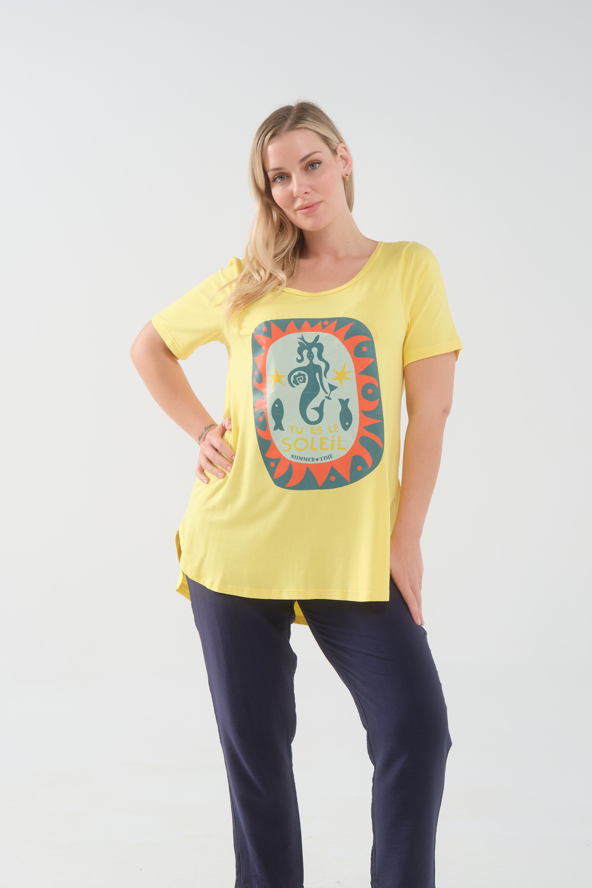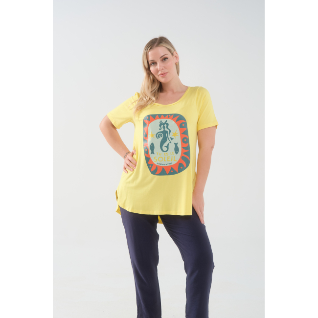 Μπλούζα (μπλουζοφόρεμα) Viscose με τύπωμα "μέδουσα" μπροστά, ανοιχτή λαιμόκοψη, στρογγυλό τελείωμα, σε ίσια άνετη γραμμή