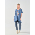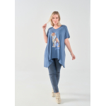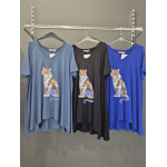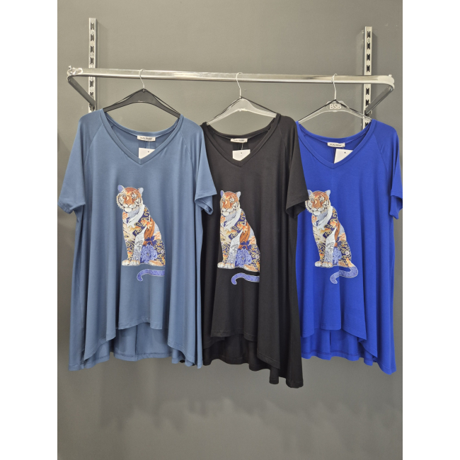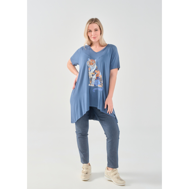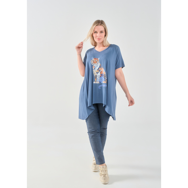 Μπλούζα (μπλουζοφόρεμα) Viscose με τύπωμα τίγρη μπροστά, V ντεκολτέ, ρεγκλάν μανίκια, σε Α πολύ άνετη γραμμή