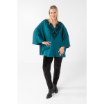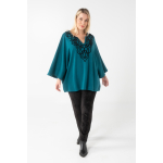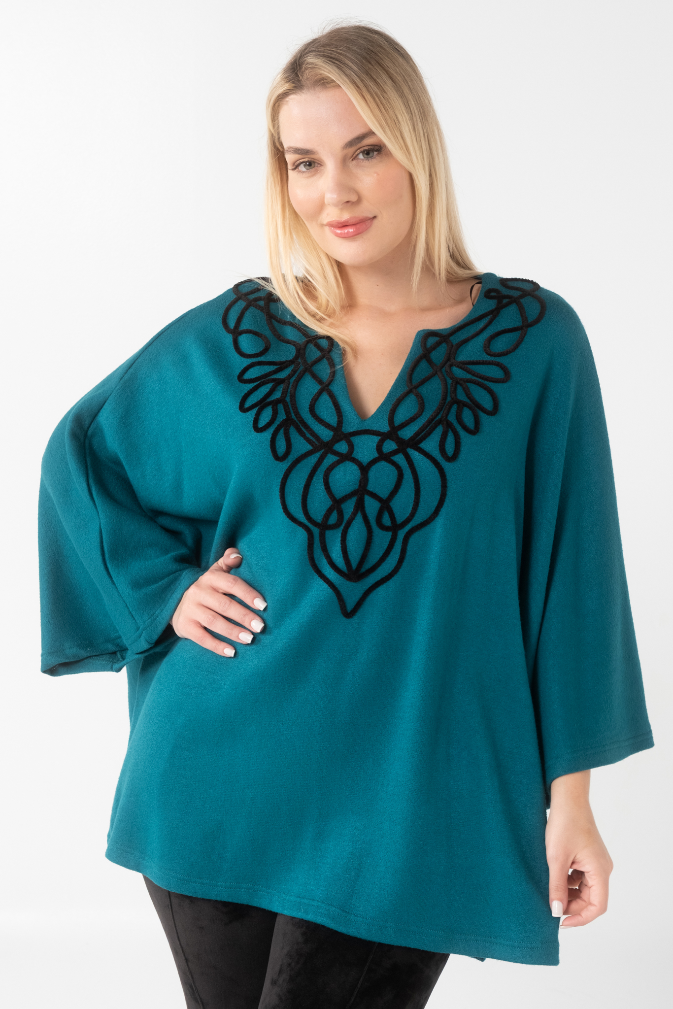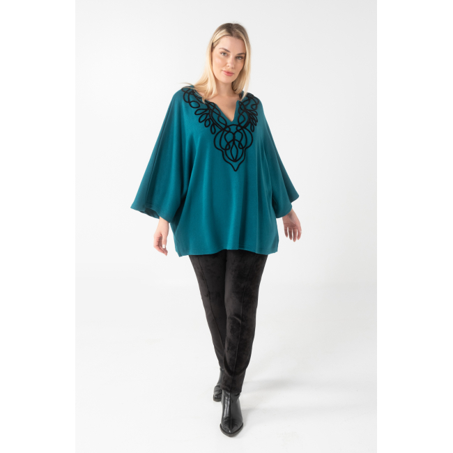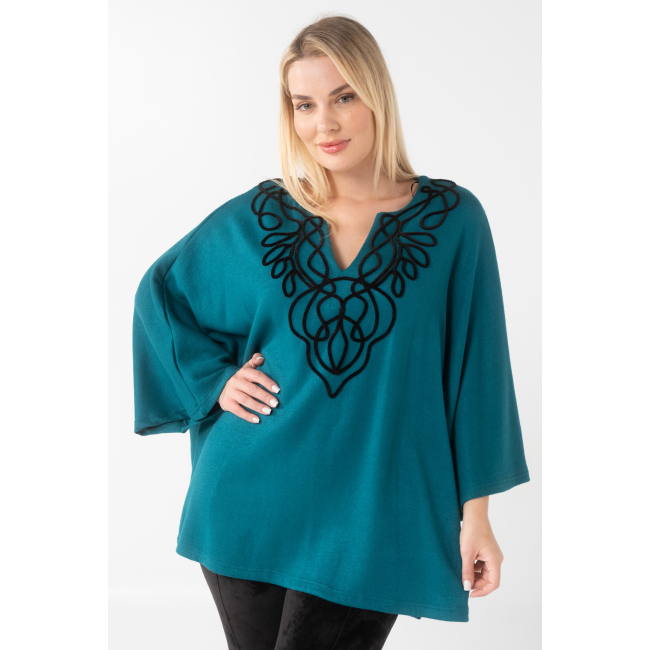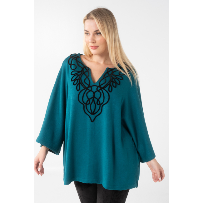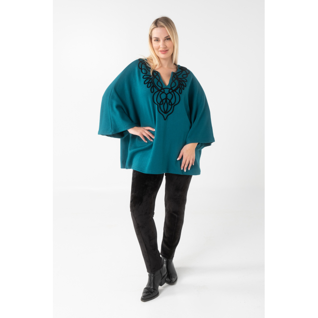 Μπλούζα/Μπλουζοφόρεμα σε Kashmir ύφασμα κοπής/ραφής ελαστικό με βελούδινη ζεστασιά, Oversize and Onesize, V ντεκολτέ, ελεύθερα μανίκια, βελούδο κέντημα μπροστά, σε ίσια πολύ άνετη γραμμή