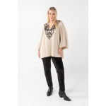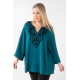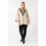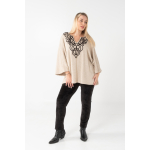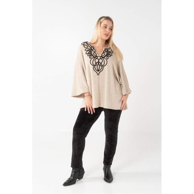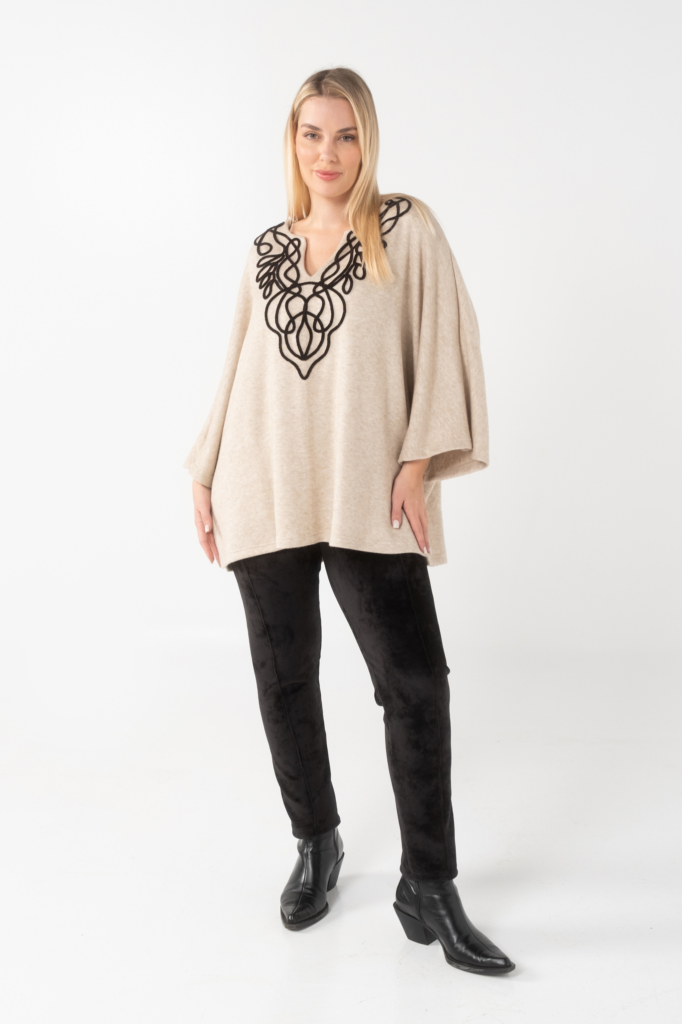 Μπλούζα/Μπλουζοφόρεμα σε Kashmir ύφασμα κοπής/ραφής ελαστικό με βελούδινη ζεστασιά, Oversize and Onesize, V ντεκολτέ, ελεύθερα μανίκια, βελούδο κέντημα μπροστά, σε ίσια πολύ άνετη γραμμή
