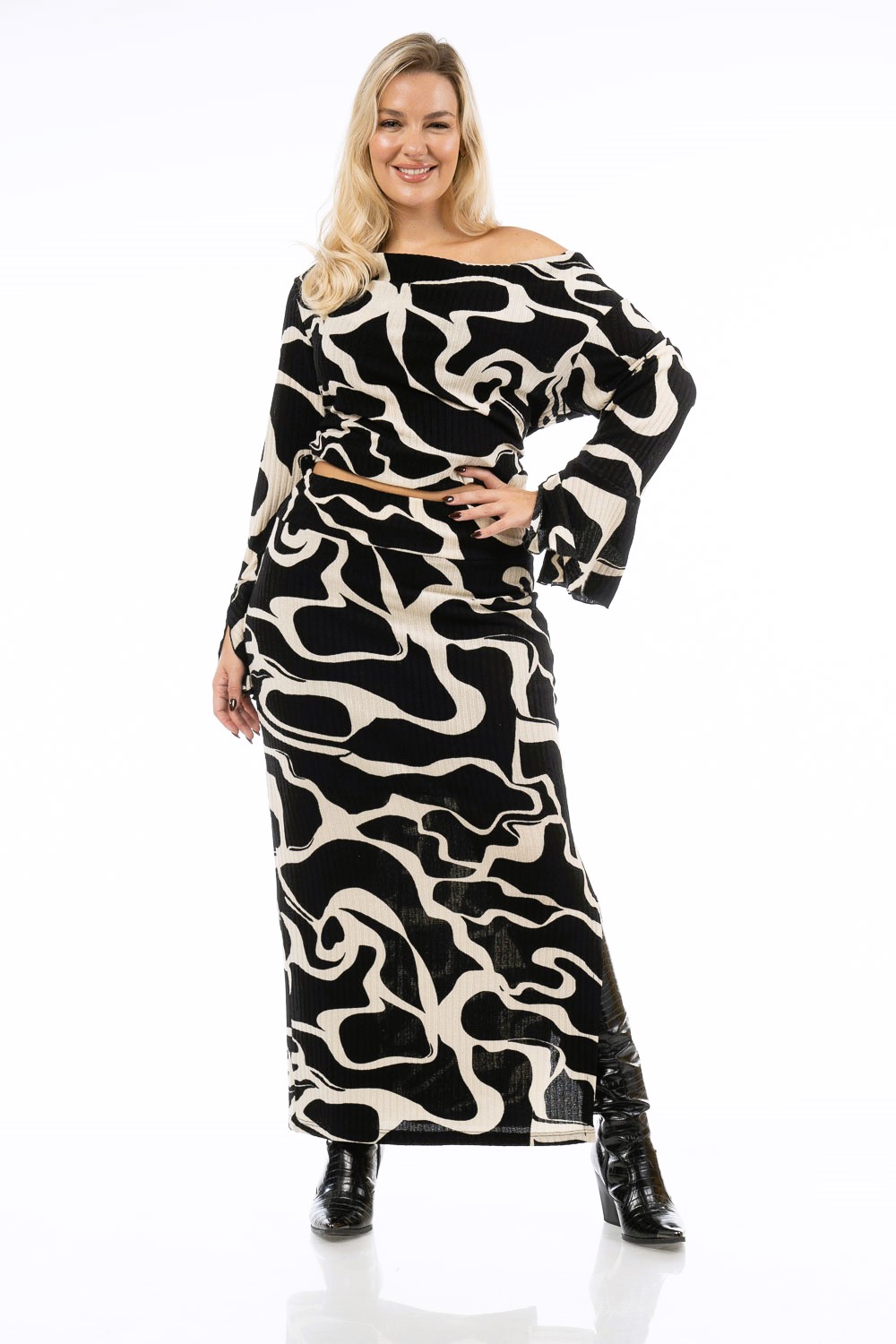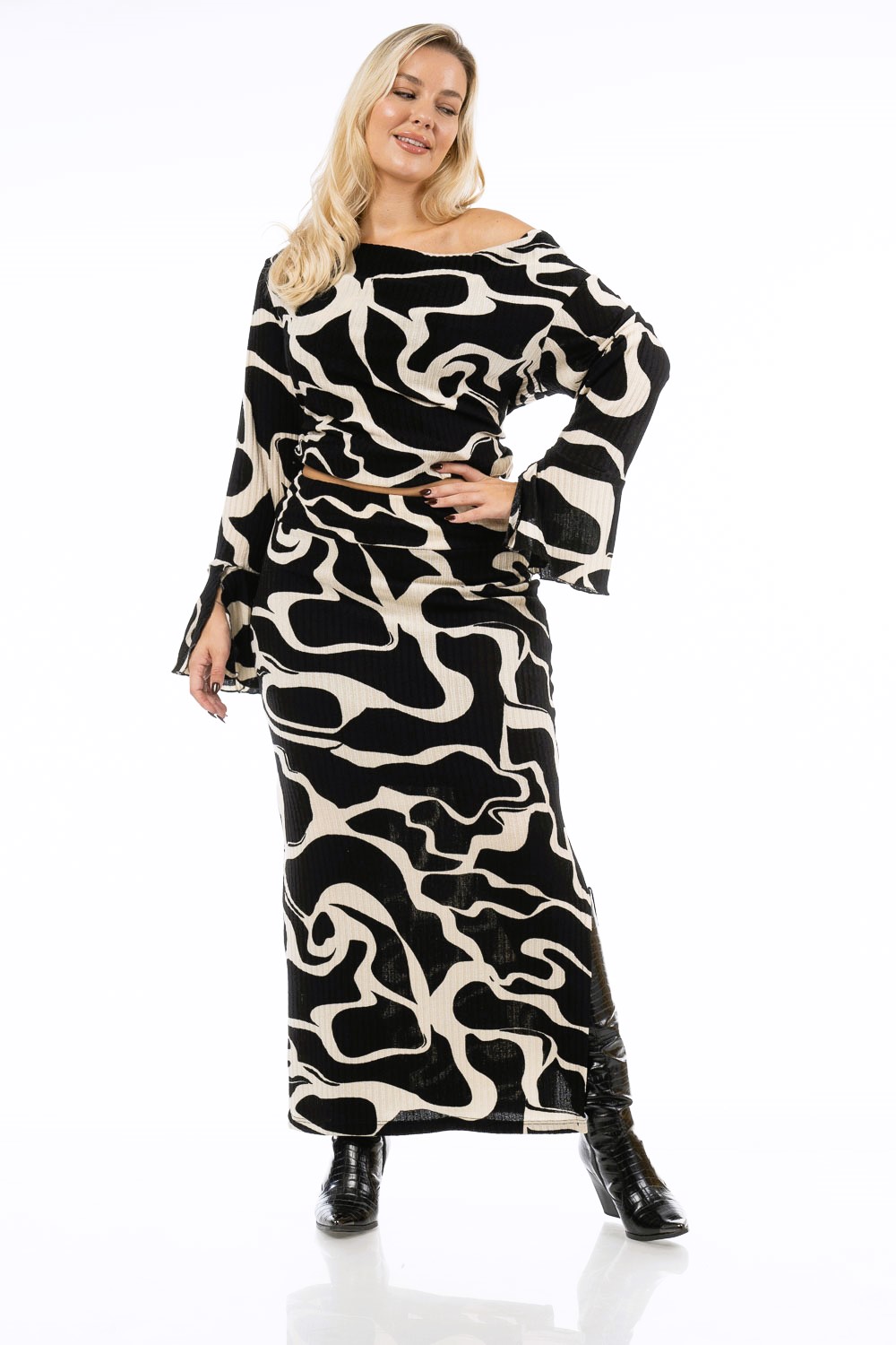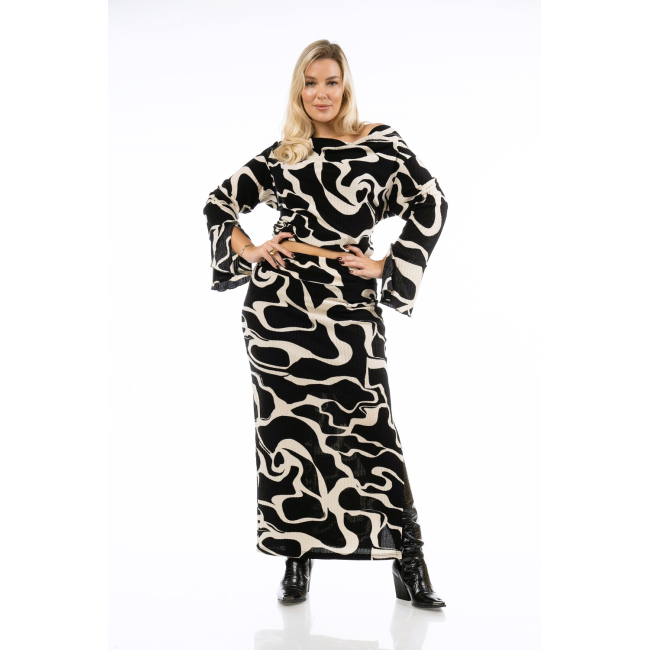 Σετ Μπλούζα/Φούστα σε πλεκτό ριπ ελαστικό ύφασμα