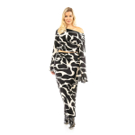 Μπλούζα με ντραπέ ντεκολτέ και με την δυνατότητα να γίνει "χαμόγελο" και off shoulder, μανίκια με μικρό βολάν στο τελείωμά τους, λάστιχο στο κάτω μέρος για δημιουργία ballon (σκεπάζει κοιλιά).