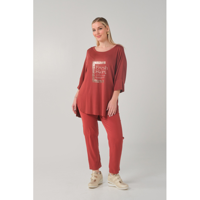 Μπλούζα (μπλουζοφόρεμα) Viscose με τύπωμα μπροστά, λαιμόκοψη, ελεύθερα μανίκια, στρογγυλό τελείωμα, άνισο, με μικρό σκίσιμο στα πλαϊνά, σε ίσια άνετη γραμμή