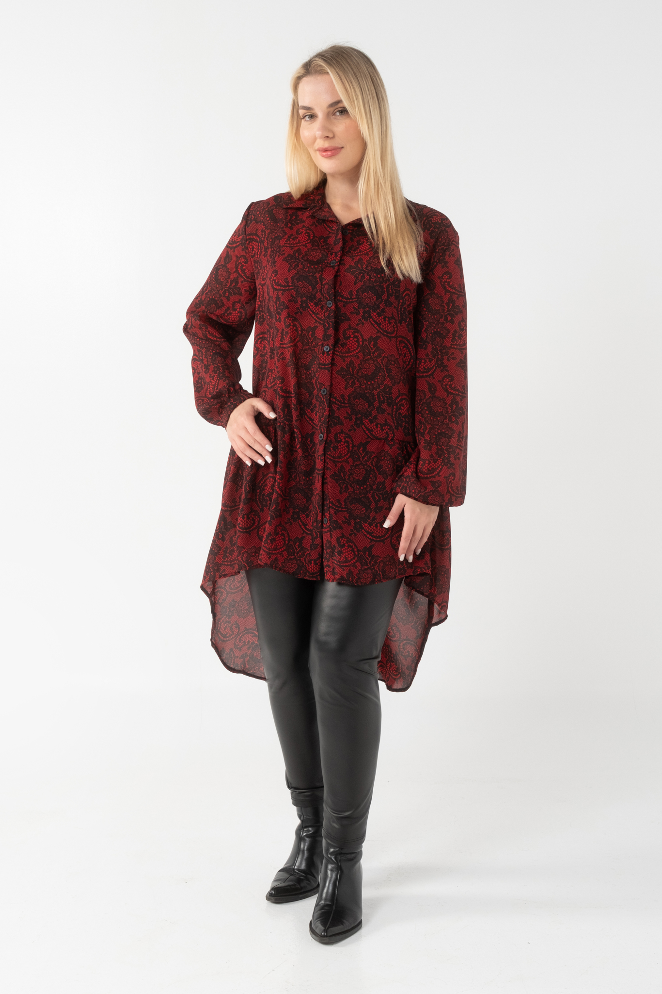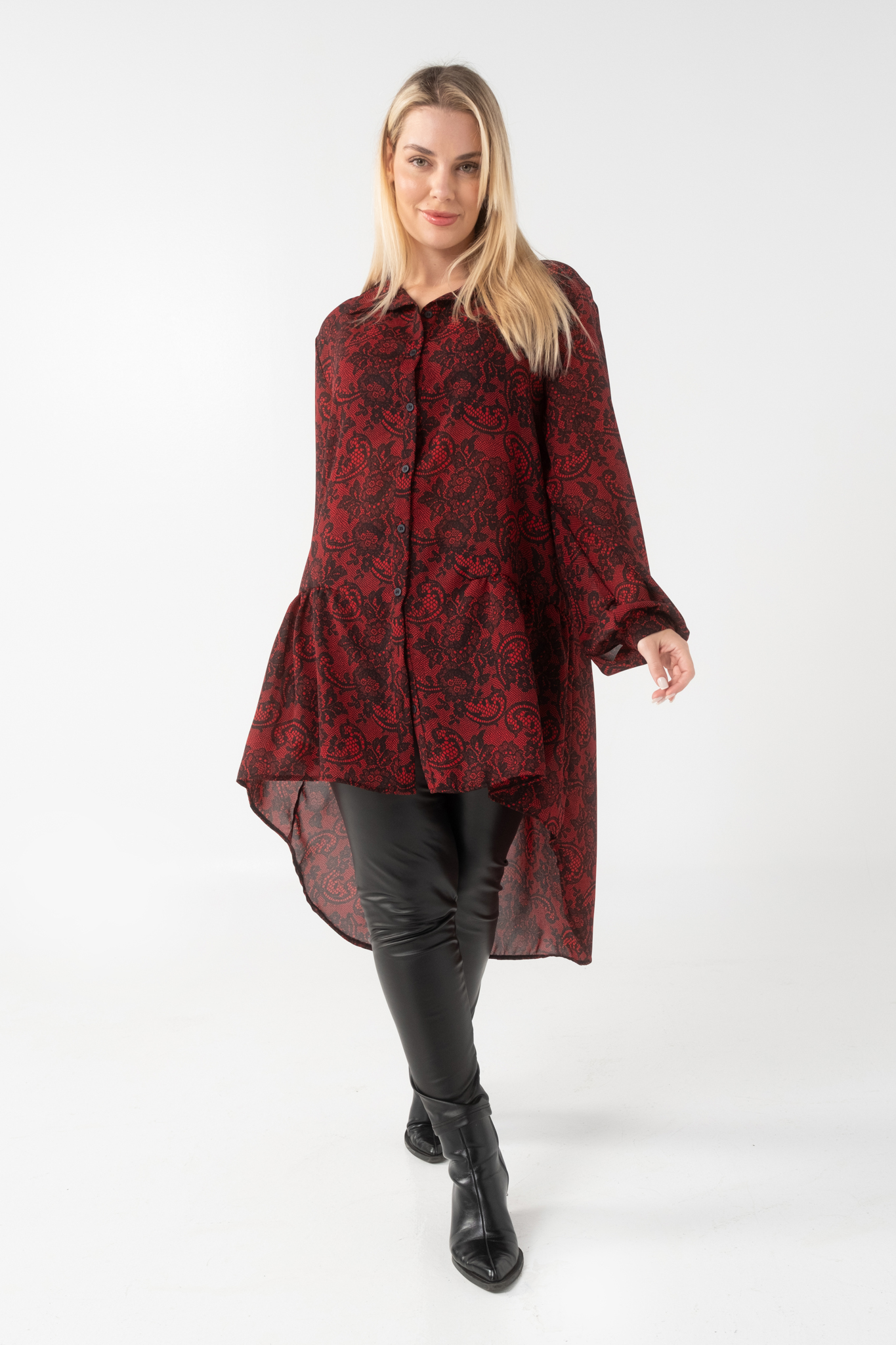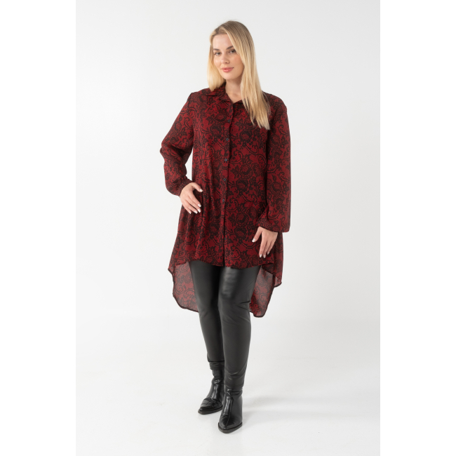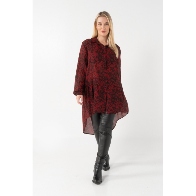 Πουκαμίσα άνιση σε Αδιάφανη Μουσελίνα, γιακάς πατιλέτα, κουμπιά, μανίκια με μανσέτα και κουμπί, στρογγυλό τελείωμα πίσω, σε πολύ άνετη γραμμή