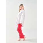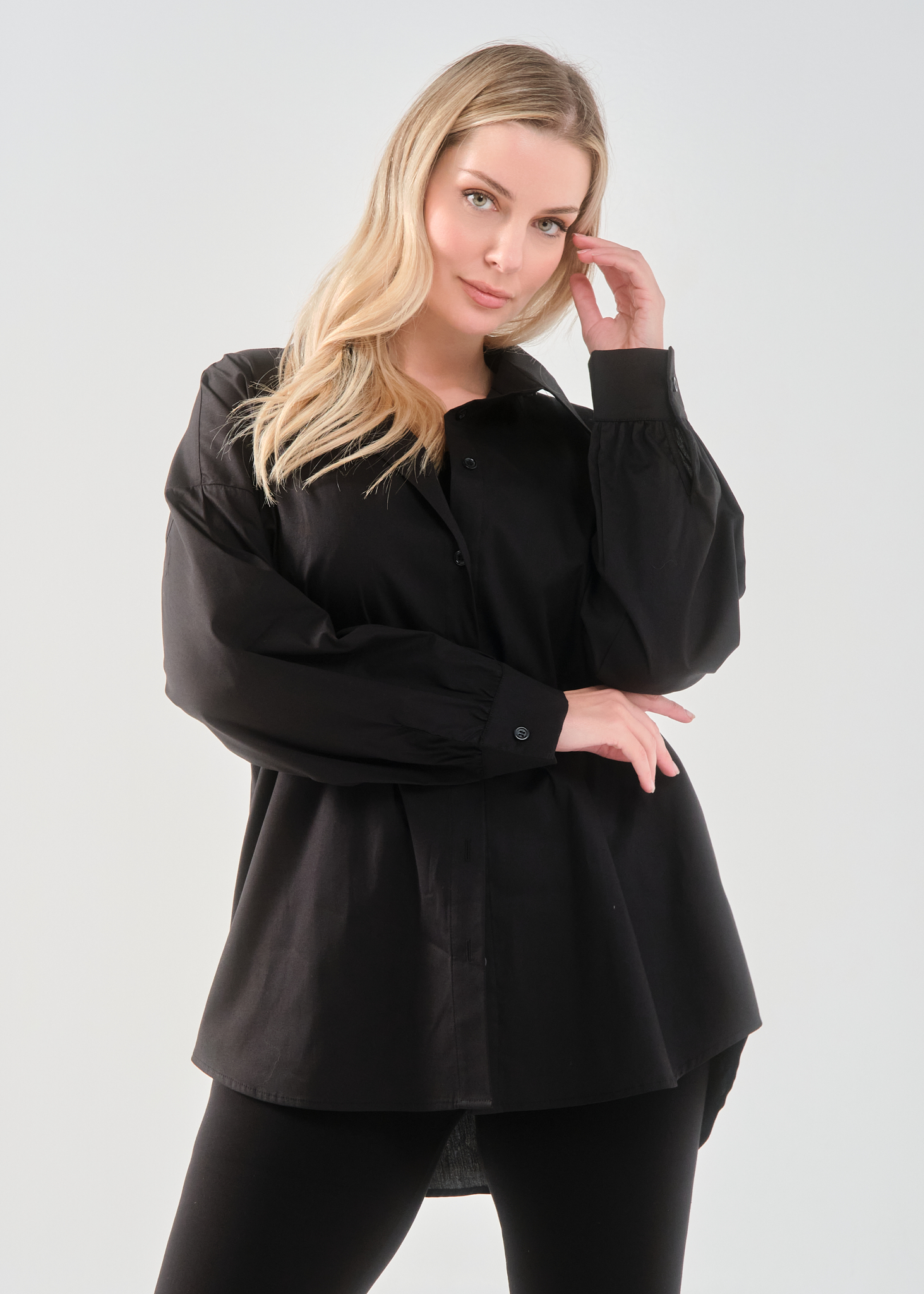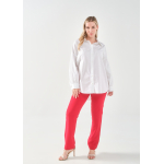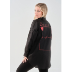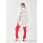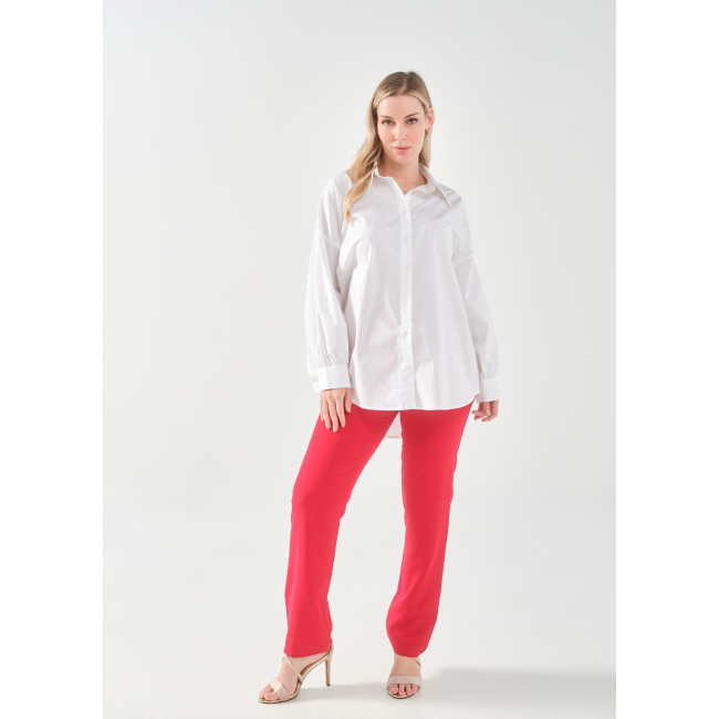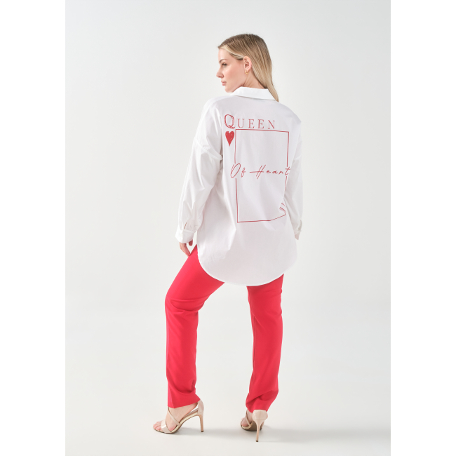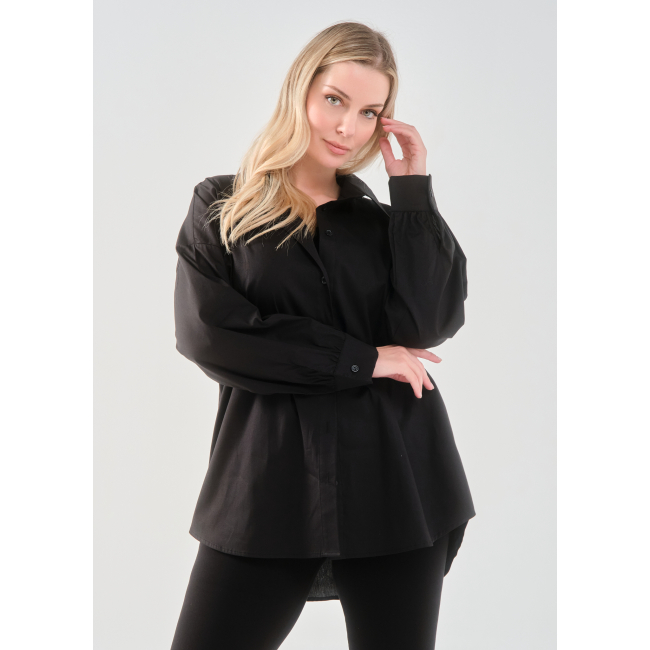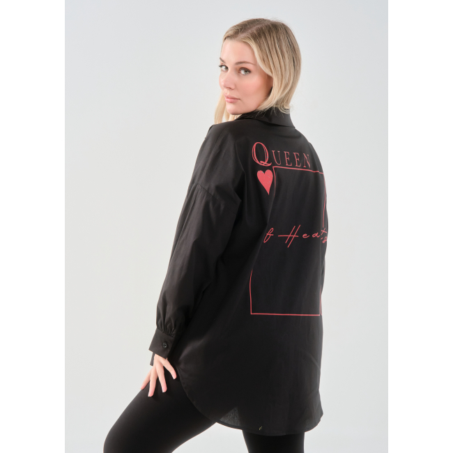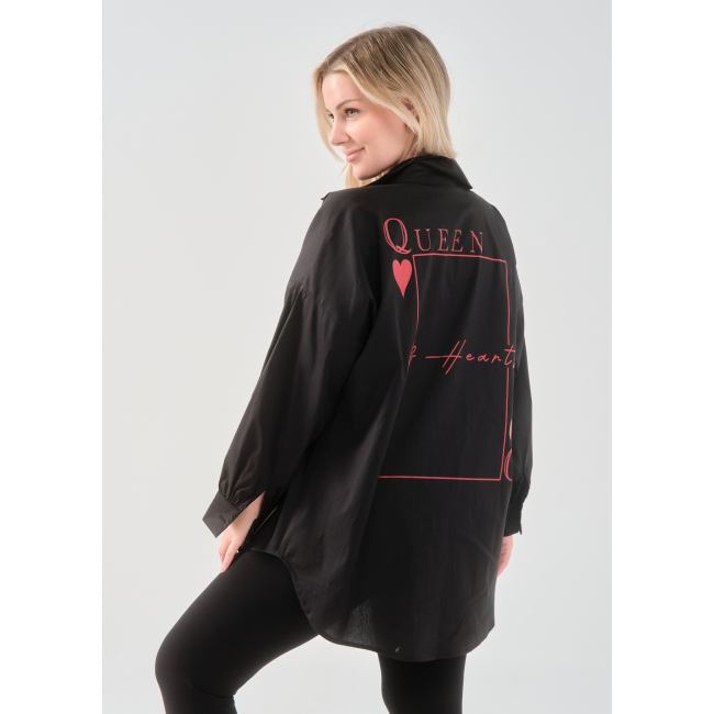 Πουκάμισο σε ελαστική ποπλίνα, 100% cotton, με άνετη γραμμή που αγκαλιάζει σωστά το curvy σώμα και εντυπωσιακό τύπωμα στην πλάτη.