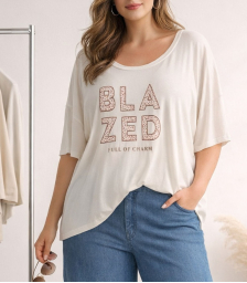 Πουκάμισο σε ελαστική ποπλίνα, 100% cotton, με άνετη γραμμή που αγκαλιάζει σωστά το curvy σώμα και εντυπωσιακό τύπωμα στην πλάτη.