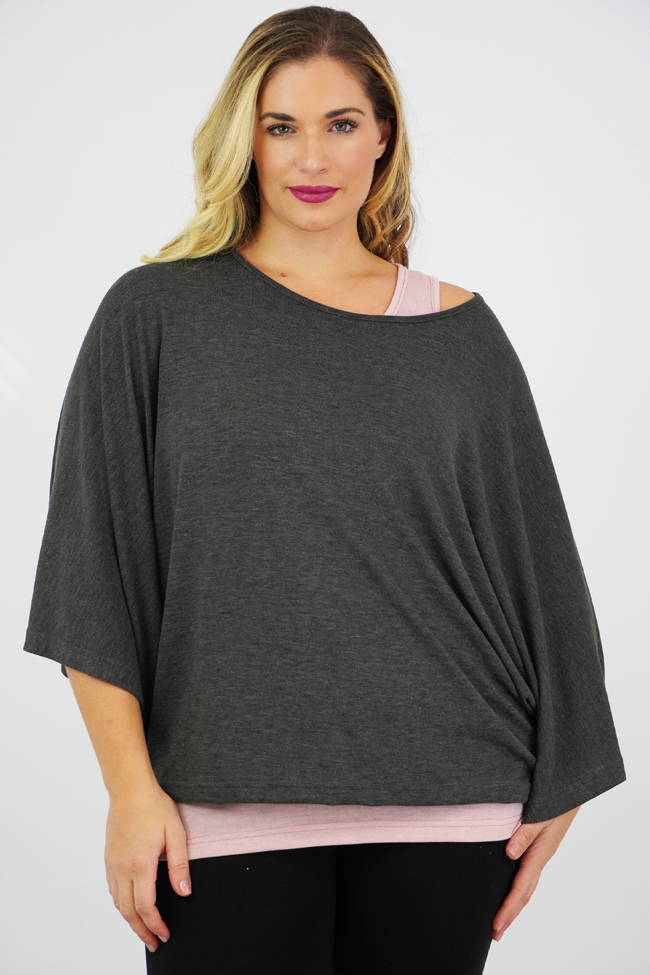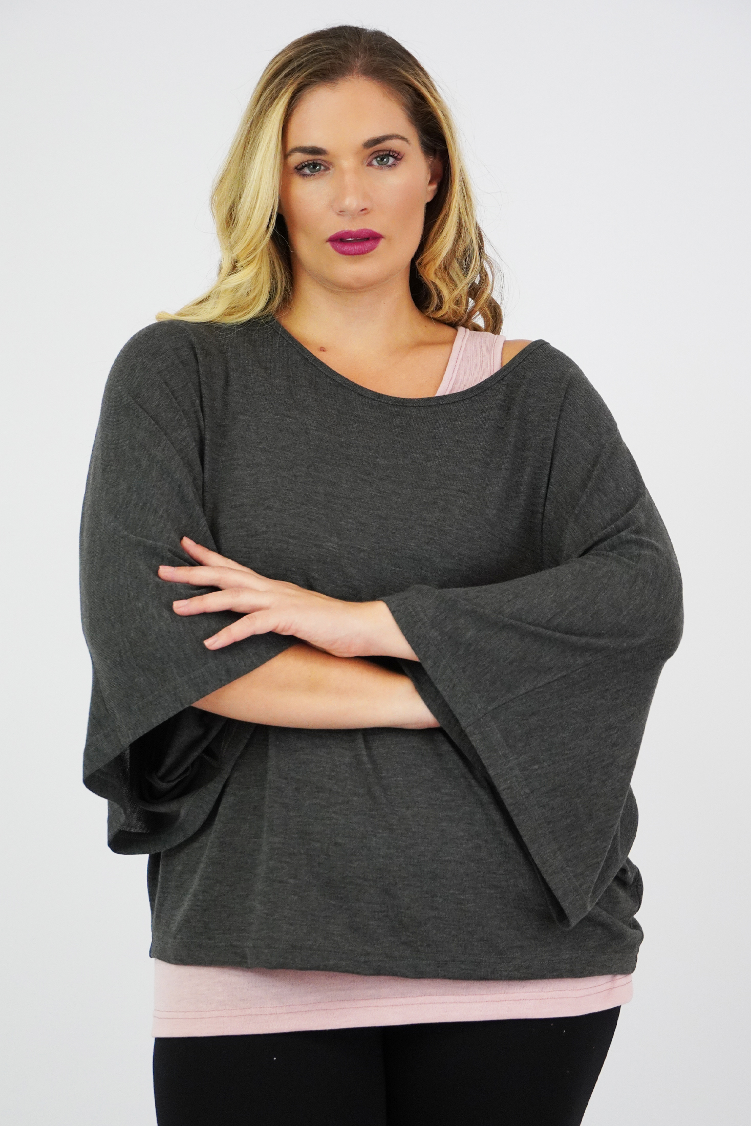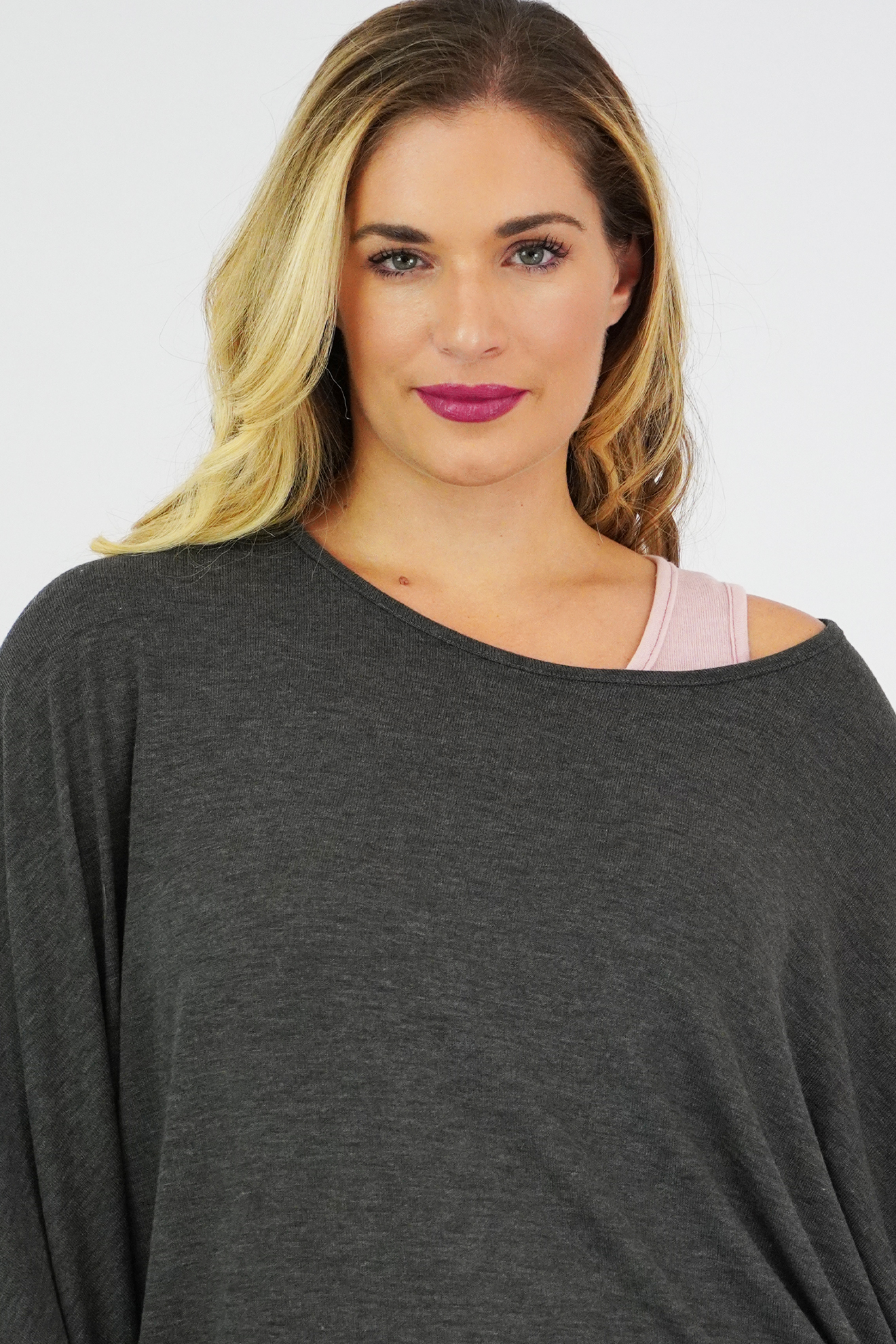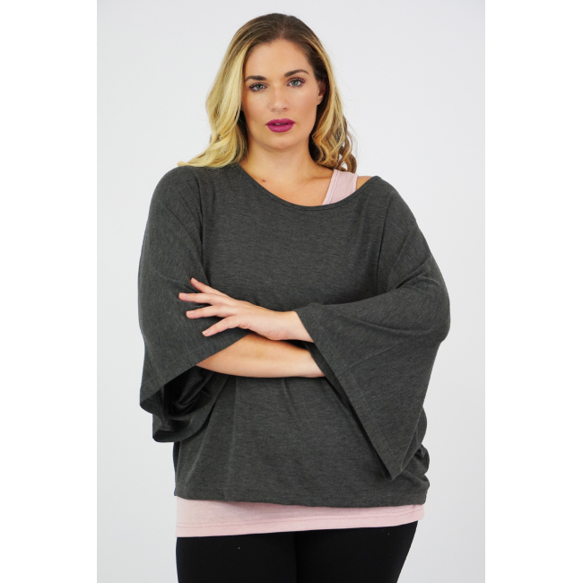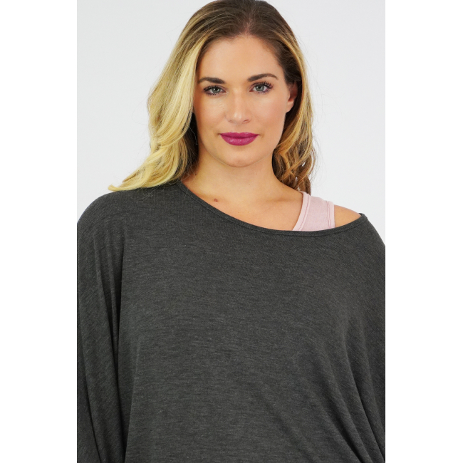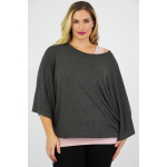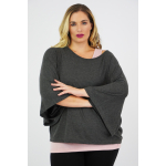 Μπλούζα/Τουνίκ σε πλεκτό κοπής/ραφής, oversize & one size, στρογγυλή λαιμόκοψη, ζαπονέ μανίκια τρουακάρ, σε πολύ άνετη γραμμή.