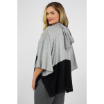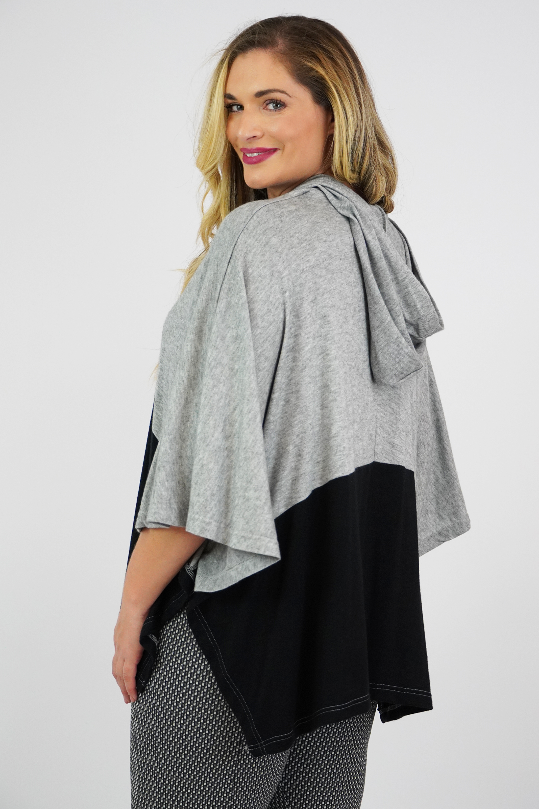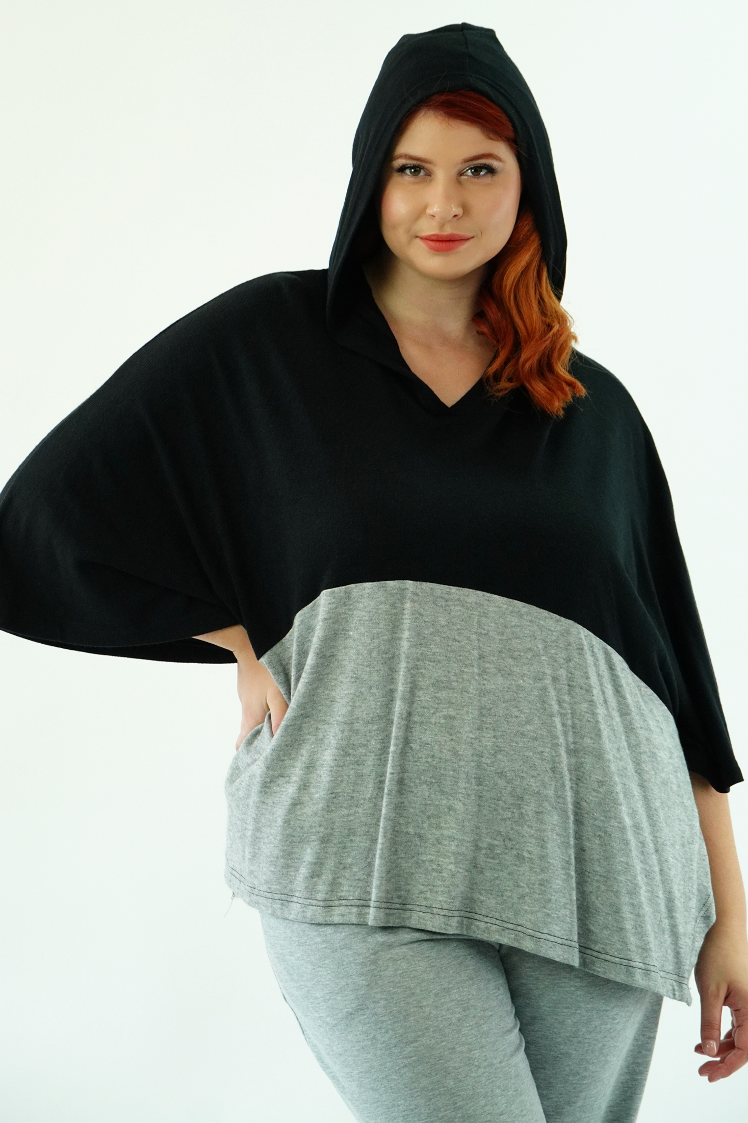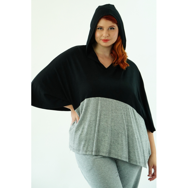 Μπλούζα σε στυλ "πόντσο", με διχρωμία, Loose γραμμή, πλεκτό κοπής/ραφής ύφασμα, κουκούλα, τρουακάρ ελεύθερα μανίκια, διακριτική ραφή στα πλαϊνά, σε ίσια πολύ άνετη γραμμή και απίστευτη αφή υφάσματος