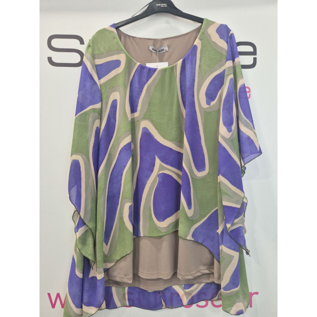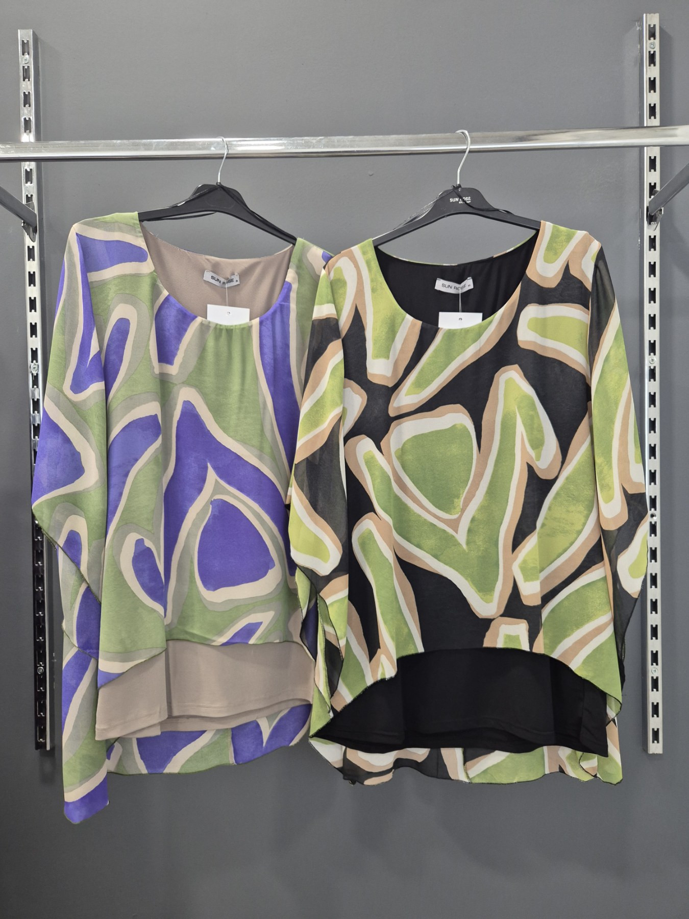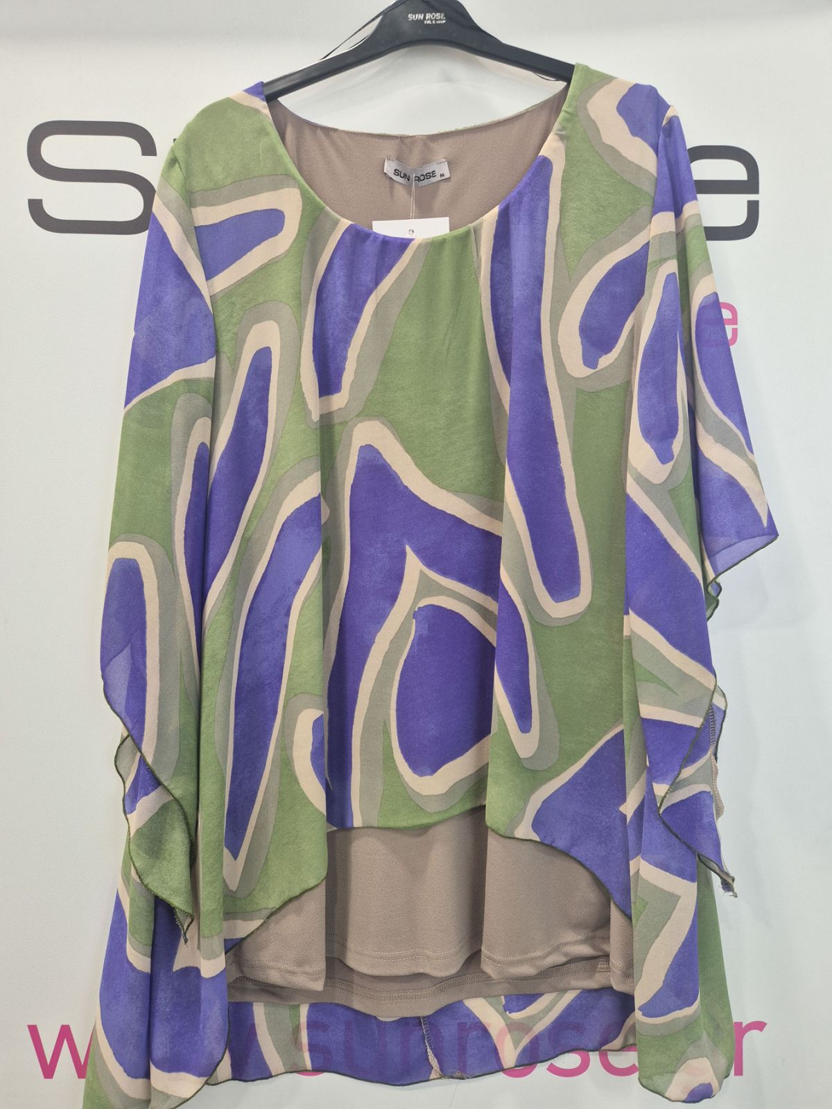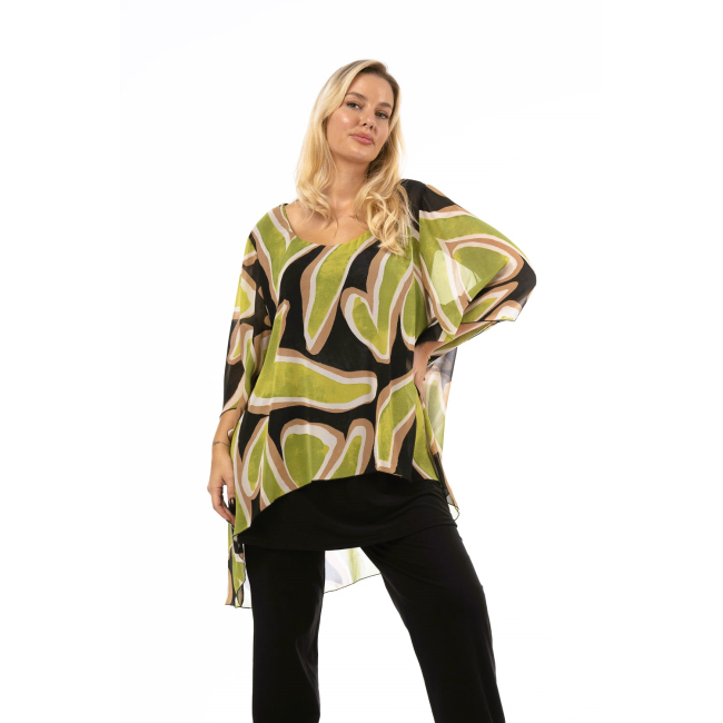 Mπλούζα/Τουνίκ εμπριμέ άνιση, Μουσελίνα, στρογγυλή λαιμόκοψη, άνισα μανίκια σε Α γραμμή και Jersey ενσωματωμένο τοπ εσωτερικά