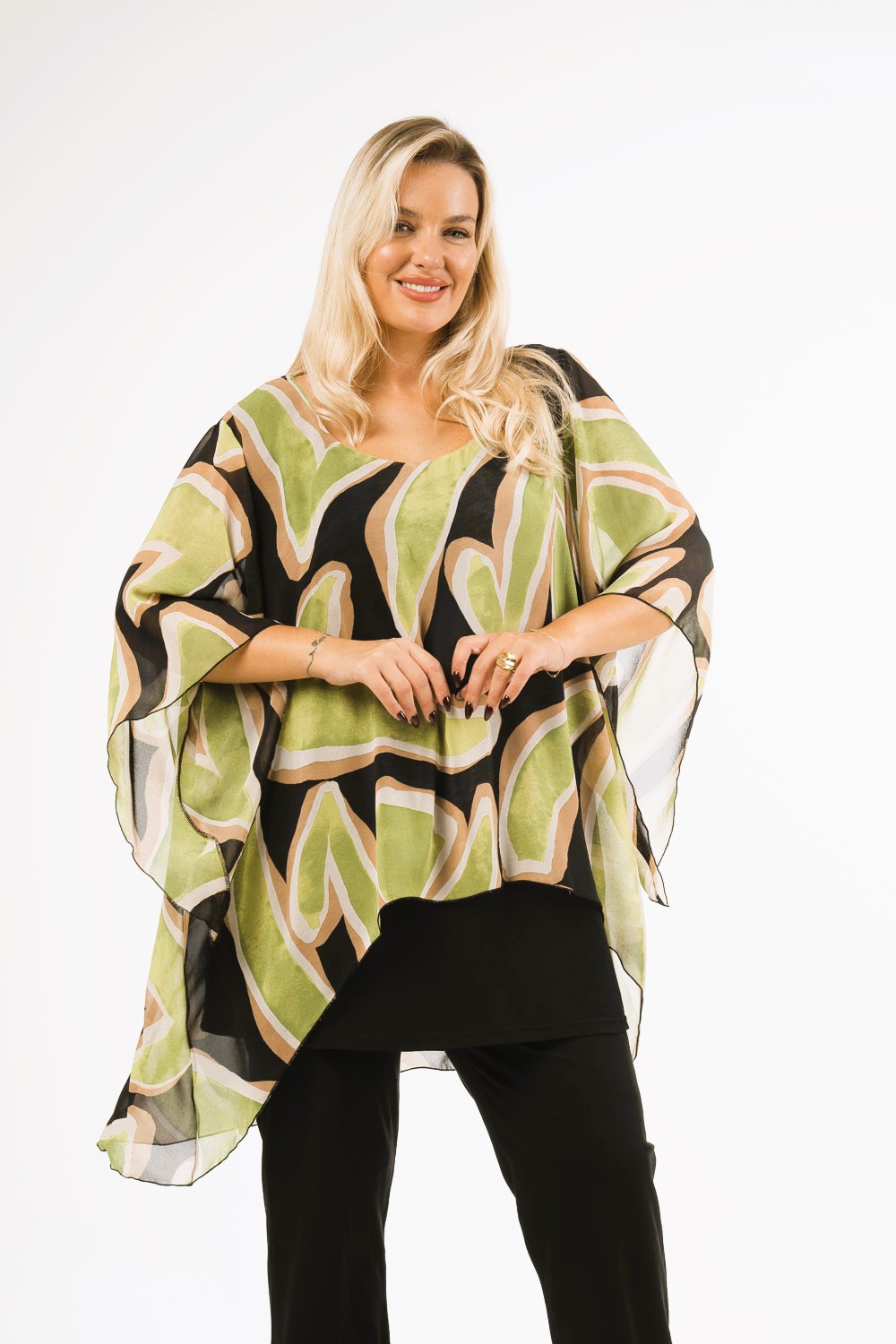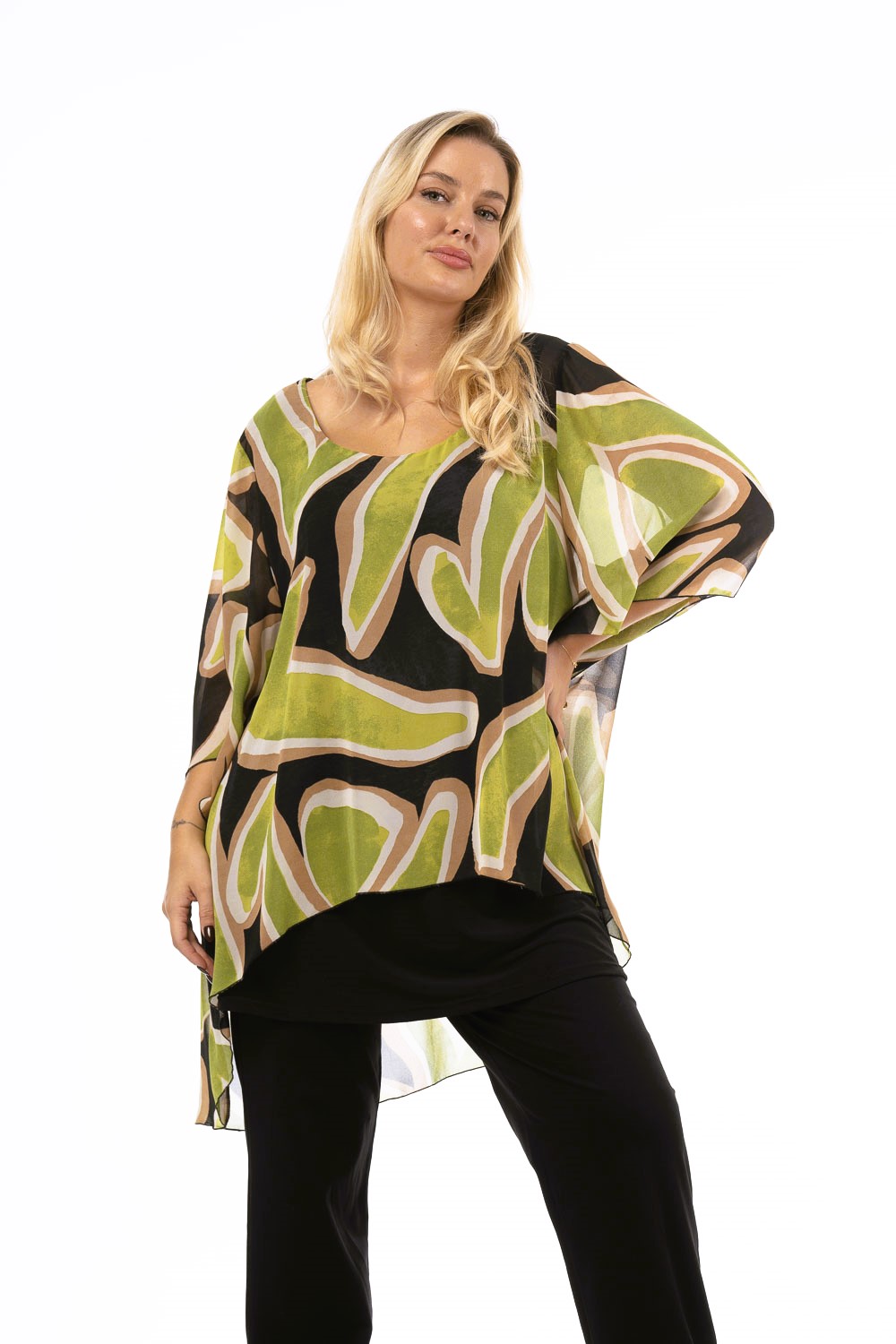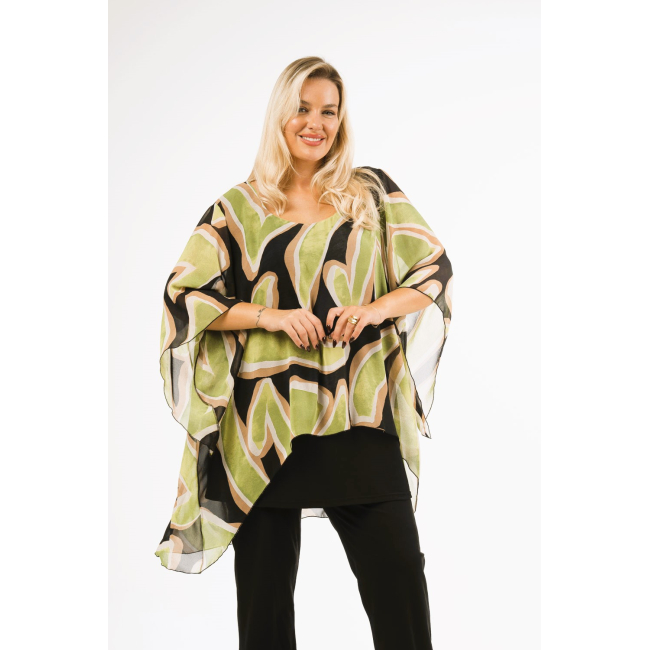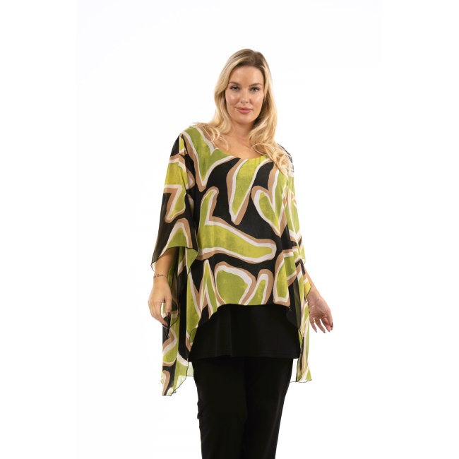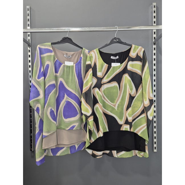 Mπλούζα/Τουνίκ εμπριμέ άνιση, Μουσελίνα, στρογγυλή λαιμόκοψη, άνισα μανίκια σε Α γραμμή και Jersey ενσωματωμένο τοπ εσωτερικά