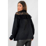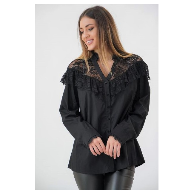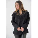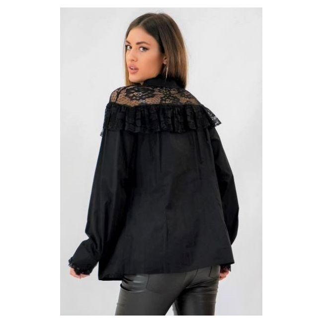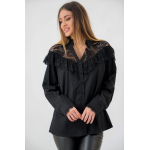 Πουκάμισο σε ποπλίνα ύφασμα, Μάο γιακά δαντέλα καλύπτει τους ώμους, μανίκια με μανσέτα και κουμπιά, σε ίσια πολύ άνετη γραμμή